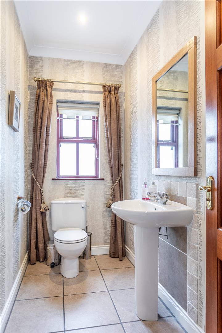 This is an incredibly rare opportunity to purchase a well presented four bedroom detached house with detached double garage occupying a generous site with superb sun orientation and open aspect to the rear nestled in an exclusive gated development in the sought after hamlet of Milltown, midway between Antrim and Randalstown. Offering the best of both worlds by virtue of a rural setting yet easy access to town, village and the M2 motorway for those who commute to Belfast or the West, this property is ideally suited to the growing family who require spacious bedroom accommodation and multiple reception rooms together with a spacious kitchen with informal dining area that has the added bonus of a utility room. With the recently constructed sunroom positioned directly off the informal dining area providing the ideal hub for entertaining and relaxing while enjoying the sun orientation and the beautifully landscaped gardens to the rear, this property is an oasis of tranquility that can truly be called "home".