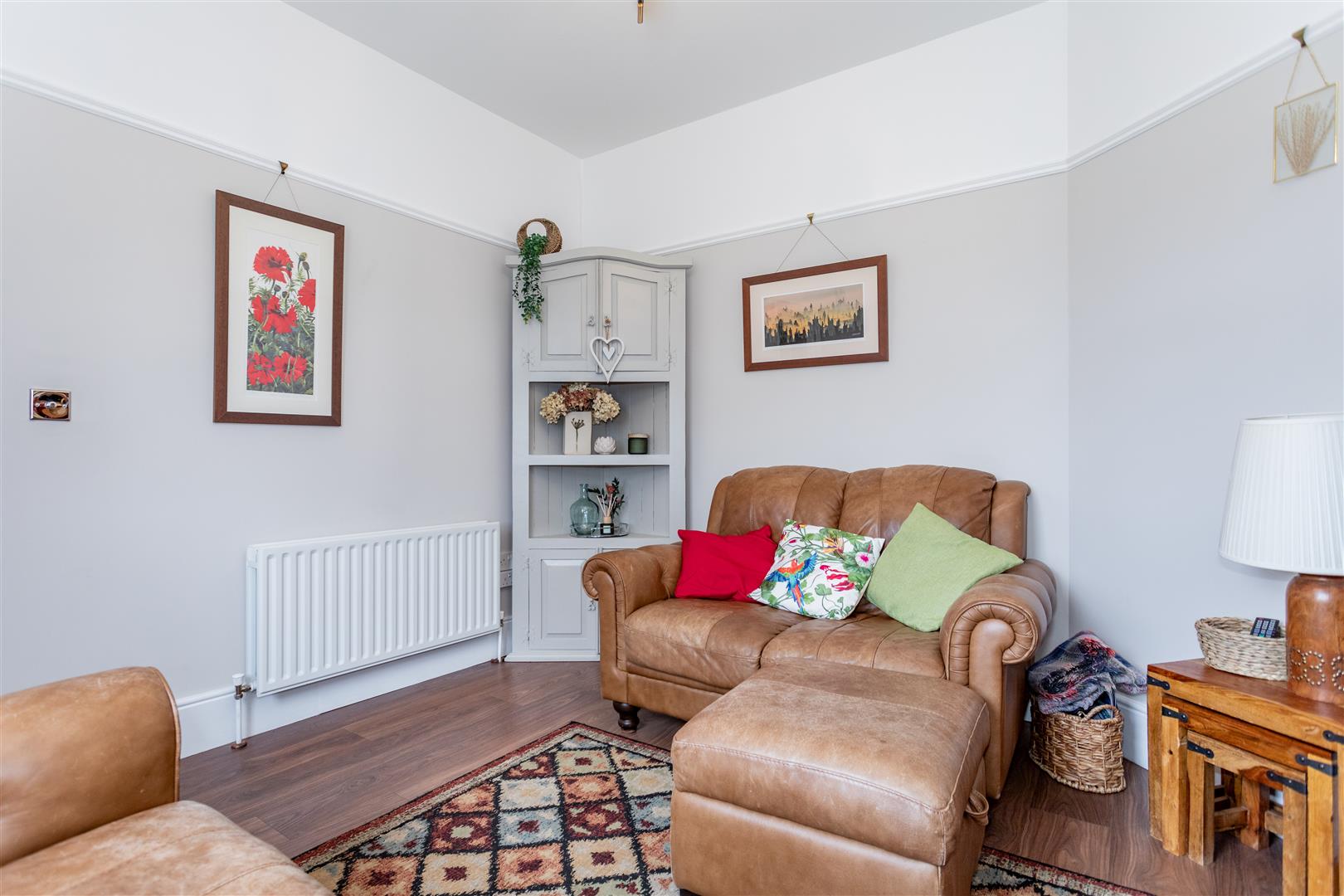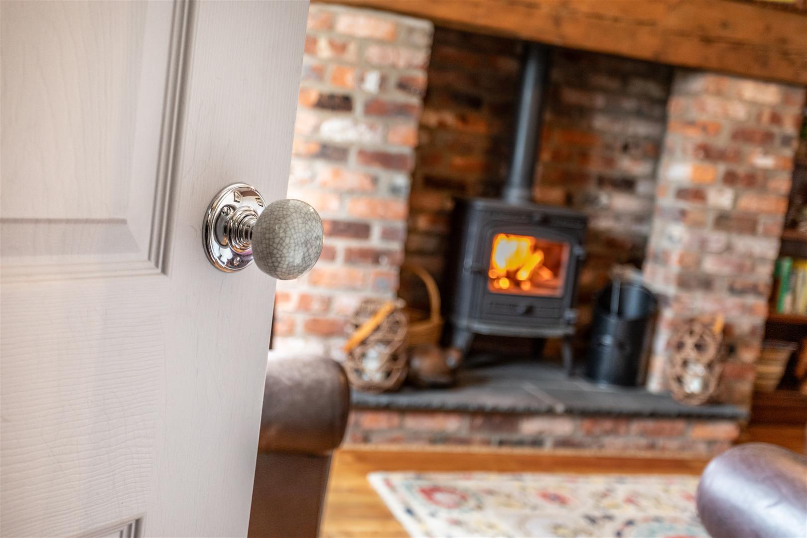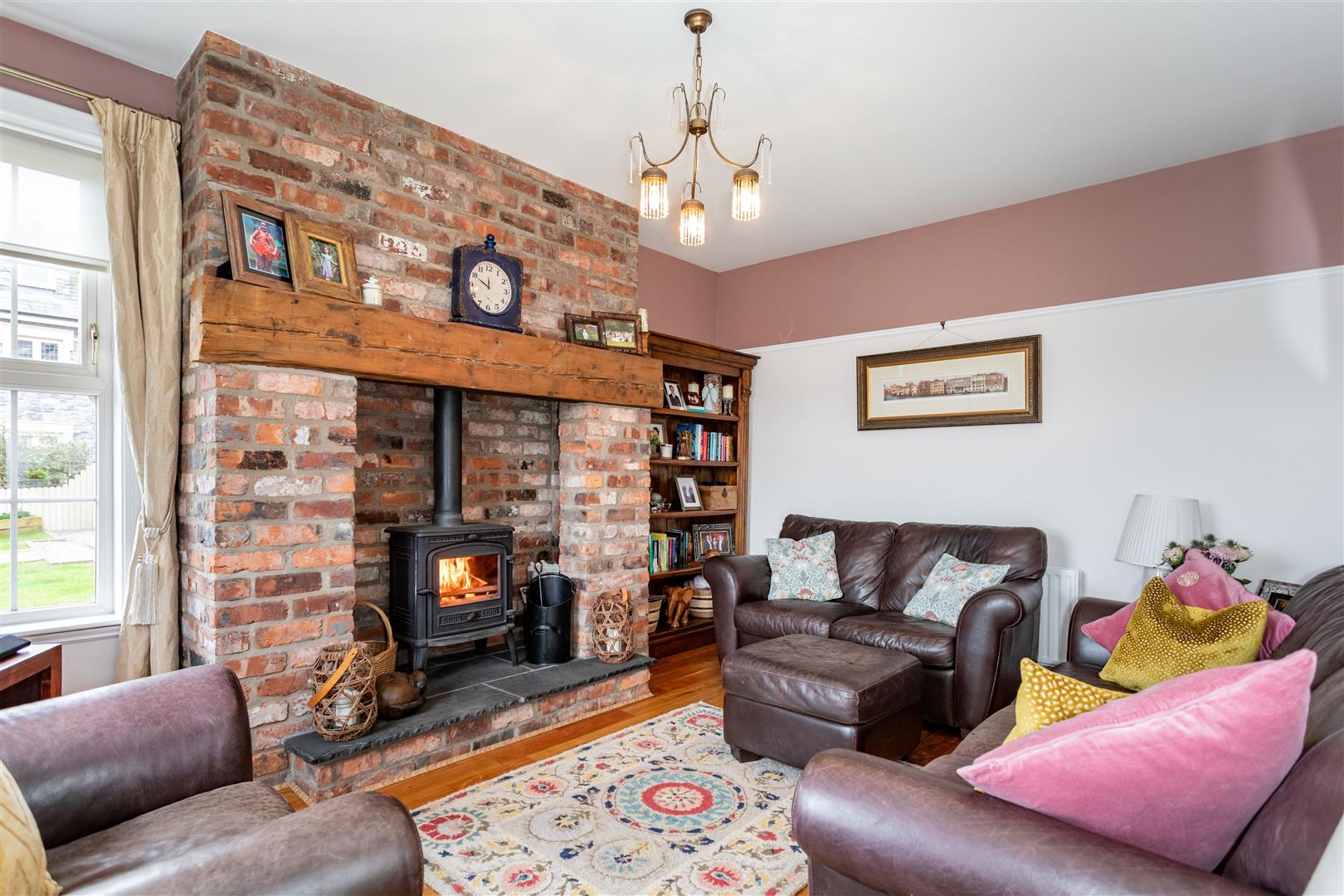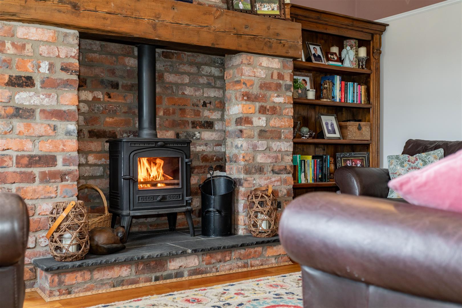 Dual aspect windows. Solid wood flooring. Large multi fuel stove with brick surround and slate hearth. One single radiator and one double radiator.