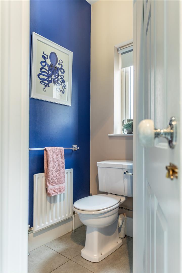 Fully enclosed rear garden with neat lawn and mixed stone patio. Well stocked flower bordering. 6 Ft timber fencing. Outside power sockets. Outside tap and light.