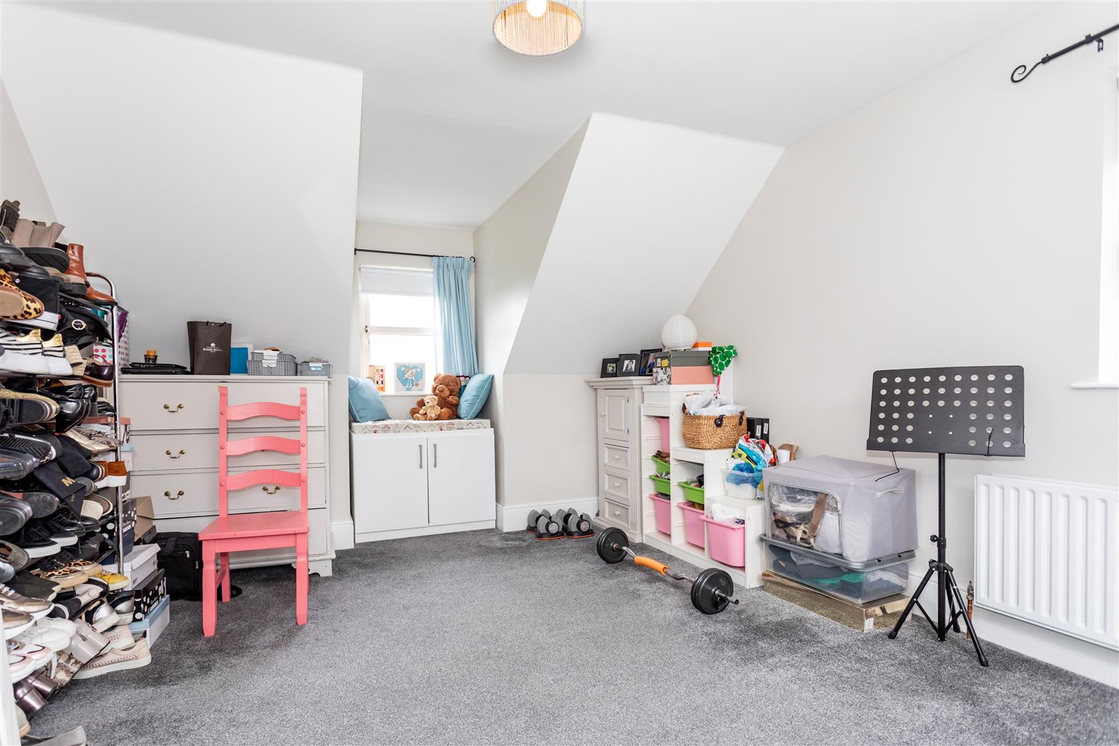 Dormer window with views over the surrounding Countryside. Velux window with large integrated storage cupboards below. Double radiator.