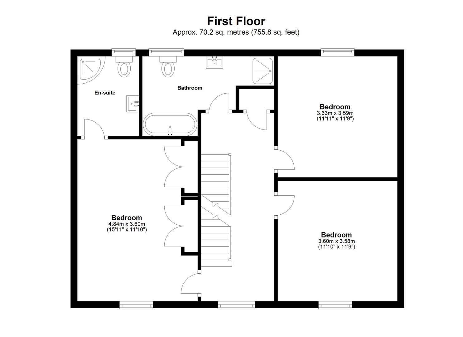 BEDROOM 2 11'9" X 11'9" (3.60m X 3.59m)