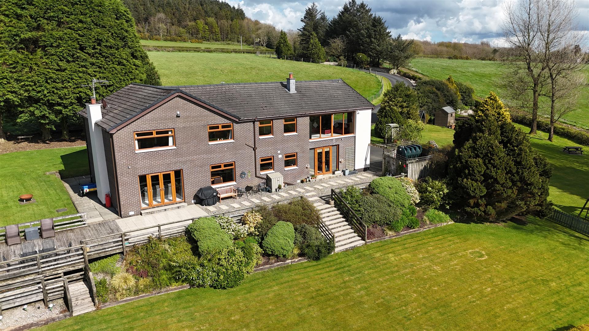 Oak effect PVC double glazed windows and external doors / Oil-fired central heating / PVC fascia and soffits / Dry verges / House and mature site on just over 1 acre with adjoining 2.9 acre field to f