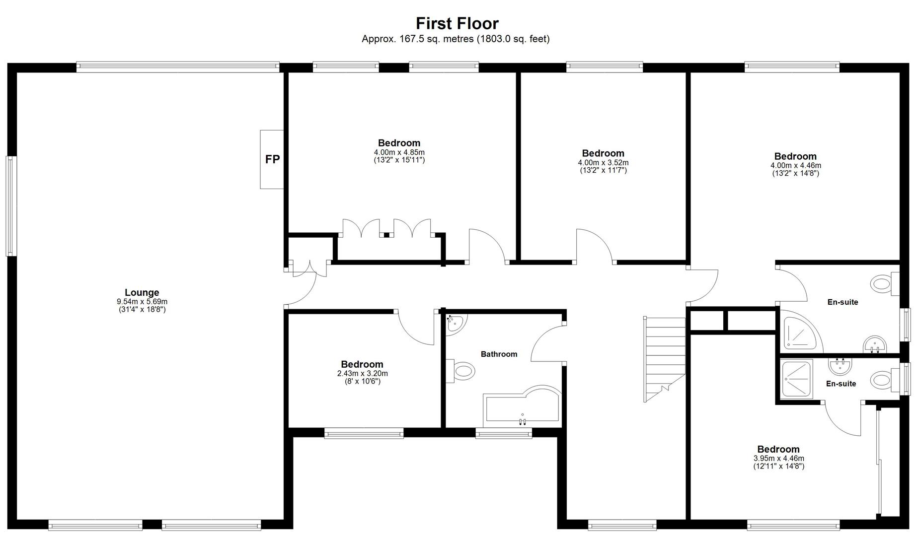 (max) to include ensuite and wardrobes with part mirrored sliding doors. Double radiator.