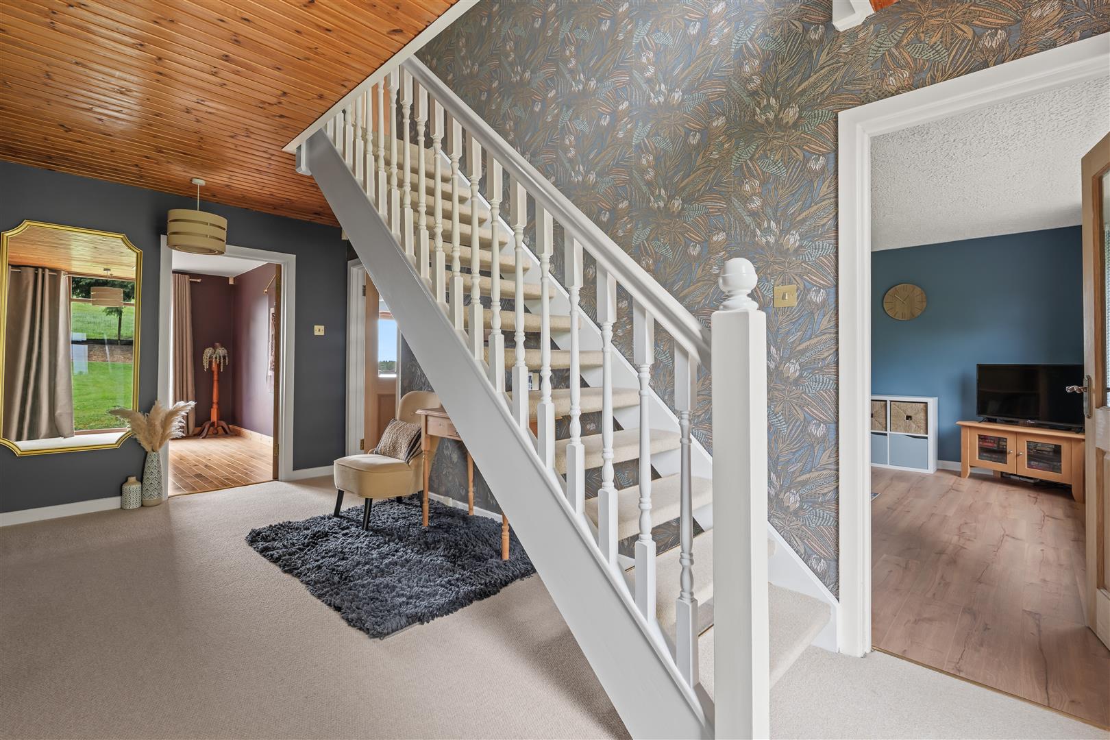 First floor landing with large picture window to front / Access to First Floor Lounge 31'3 x 18'10 with triple aspect windows creating stunning views over open countryside to the Lough Neagh and The S