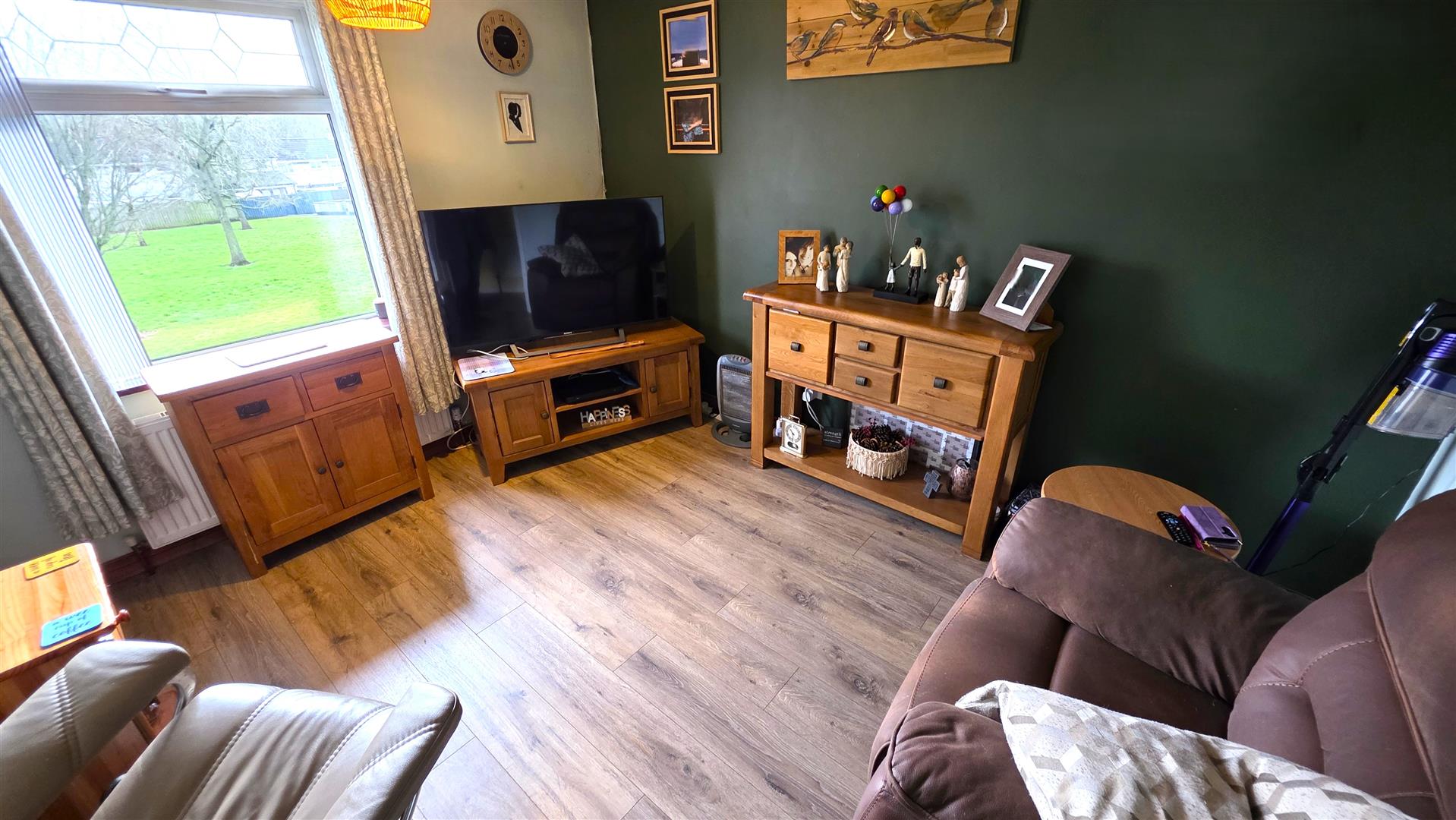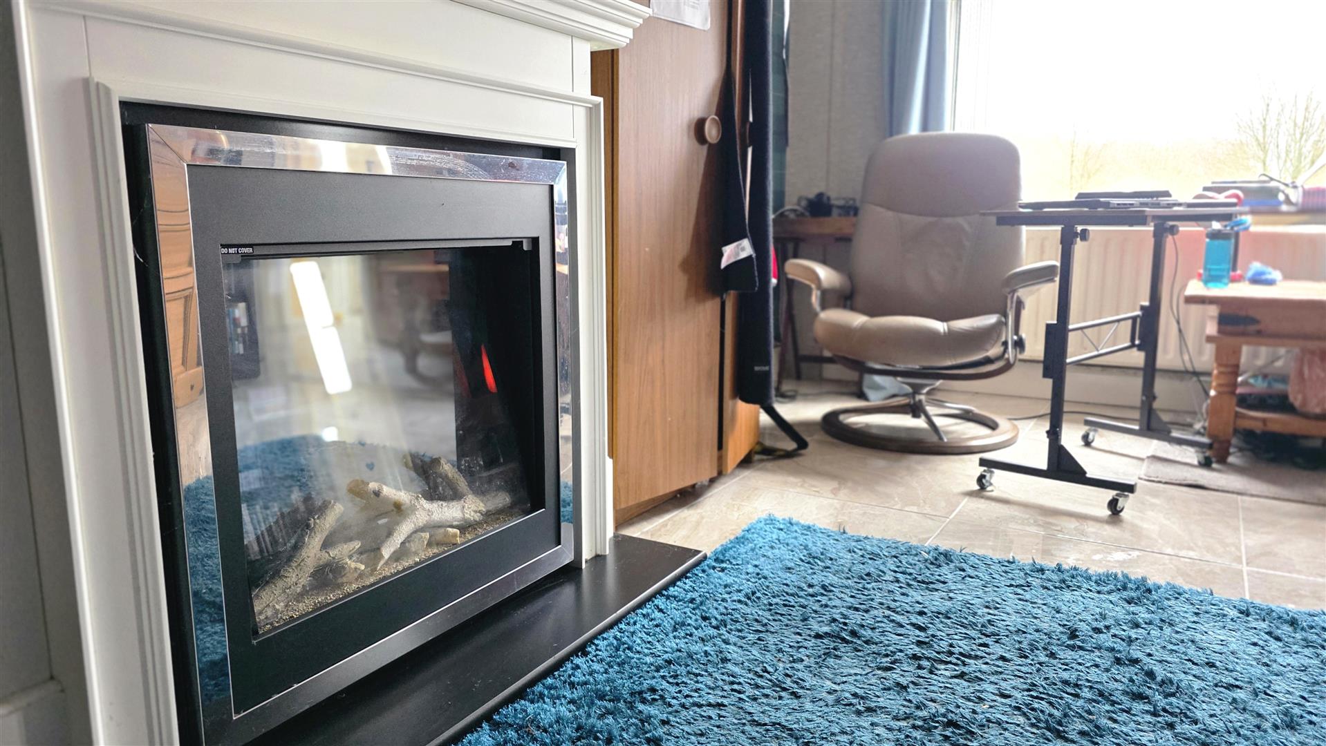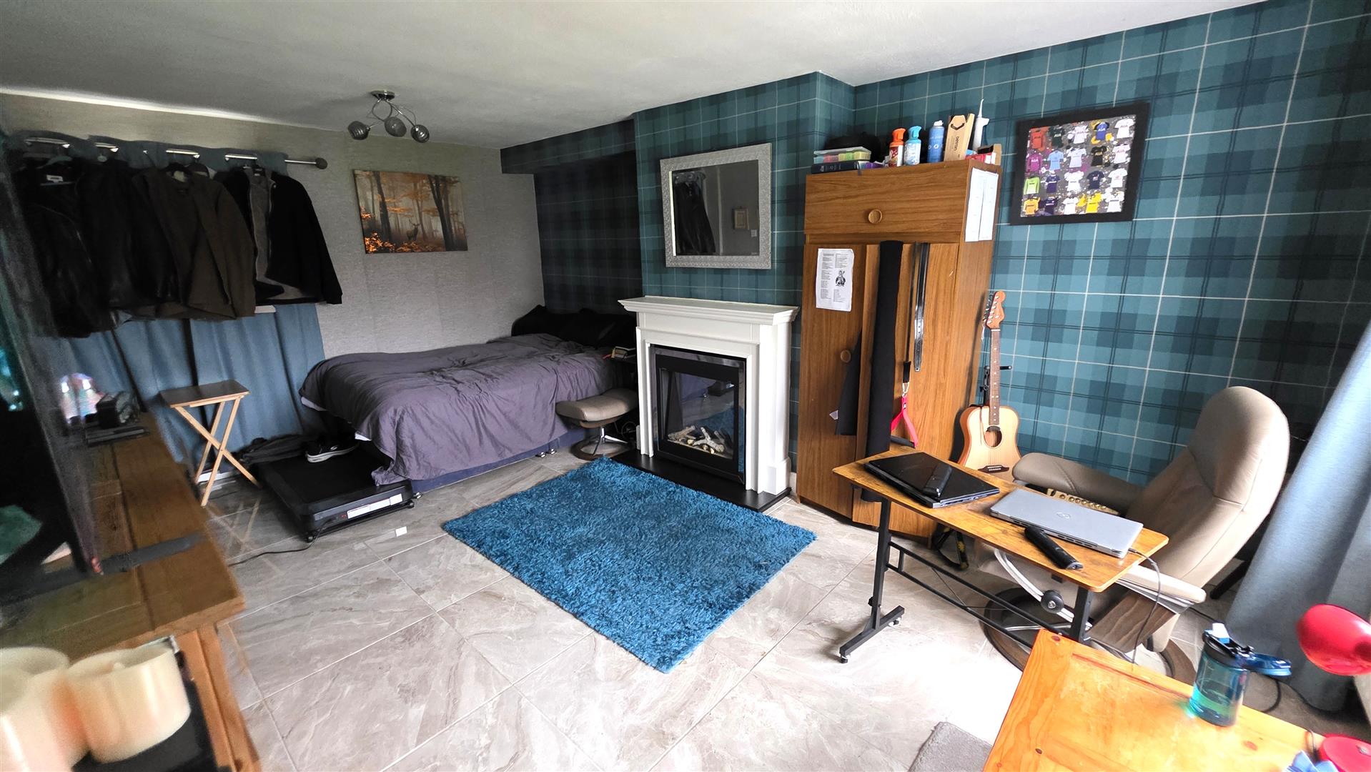 (Currently utilised as ground floor bedroom). Feature contemporary style log imitation wood burning fire with LED lighting. Fully tiled flooring. Double radiator.