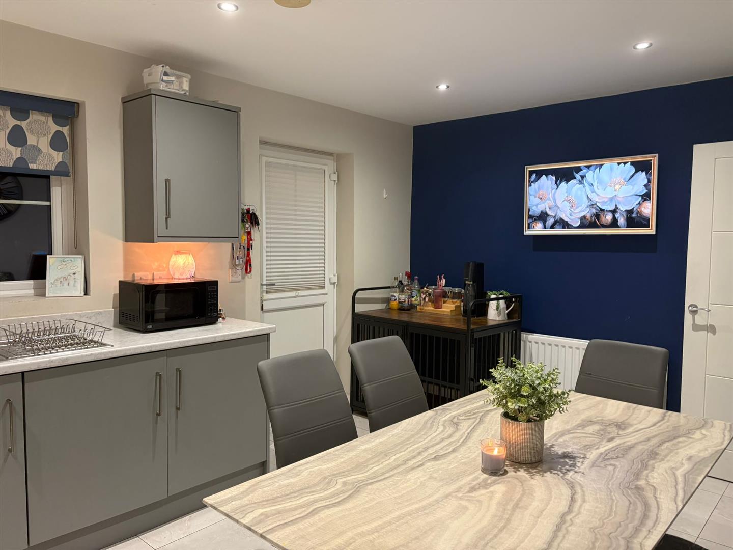 We are delighted to offer for sale 51 Belmont Hall Drive, a spacious mid-townhouse ideally positioned within this much sought-after development, close to local schools, amenities, transport links, nature trails and Antrim town centre. The ground floor comprises a generous living room, ground floor WC and a stylish, fully fitted contemporary grey kitchen with informal dining area, complete with a range of integrated appliances including a gas hob, oven, fridge freezer, washing machine and tumble dryer. To the first floor are three well-proportioned bedrooms, including a principal bedroom with ensuite, along with a modern four-piece family bathroom featuring a double-ended panel bath and separate shower. Additional storage is provided by a partially floored loft with drop-down ladder. Externally, the property benefits from an enclosed rear garden with extended patio area and excellent sun orientation.