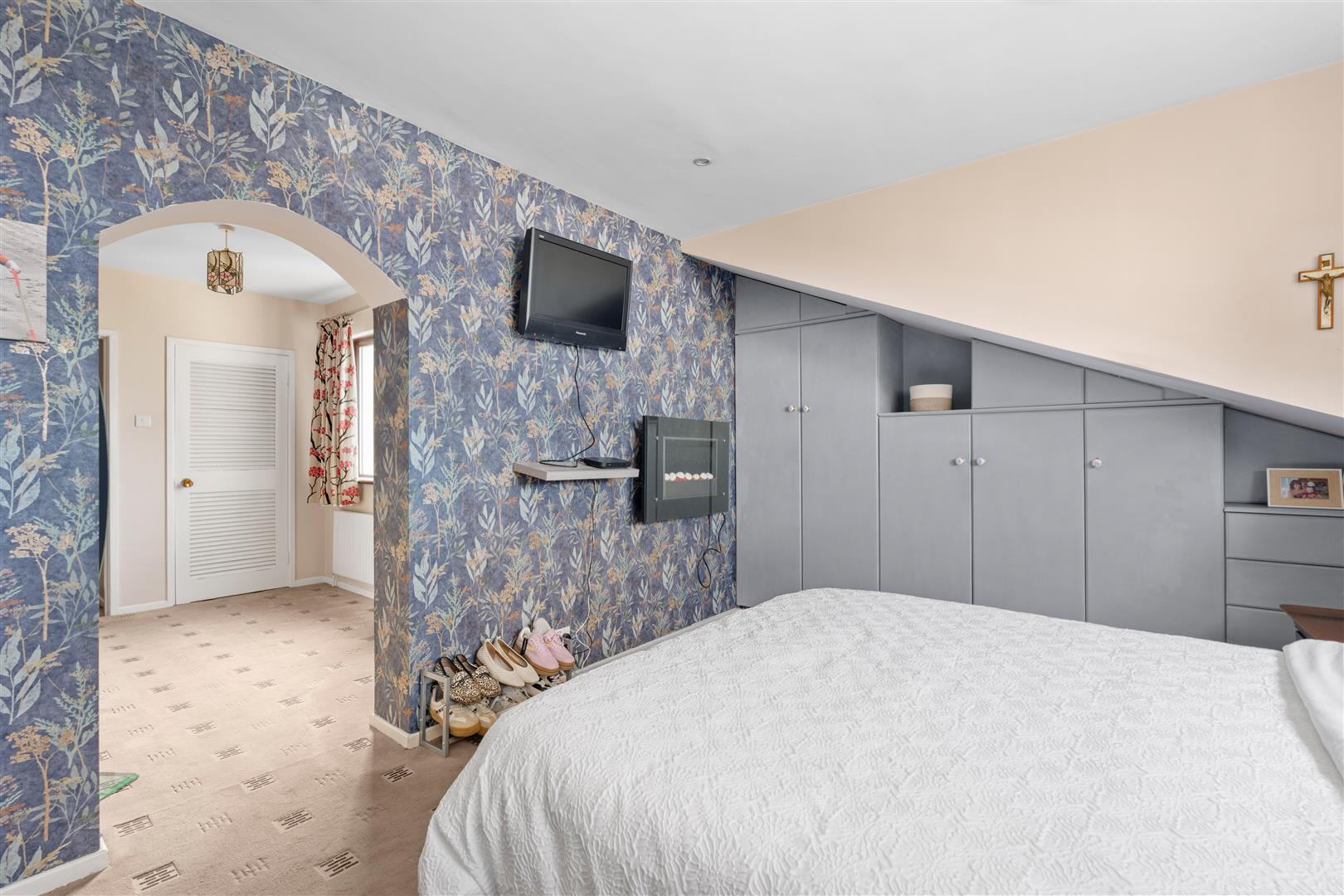 (into dormer) into full wall of built-in wardrobes. Low voltage downlights. Double radiator.