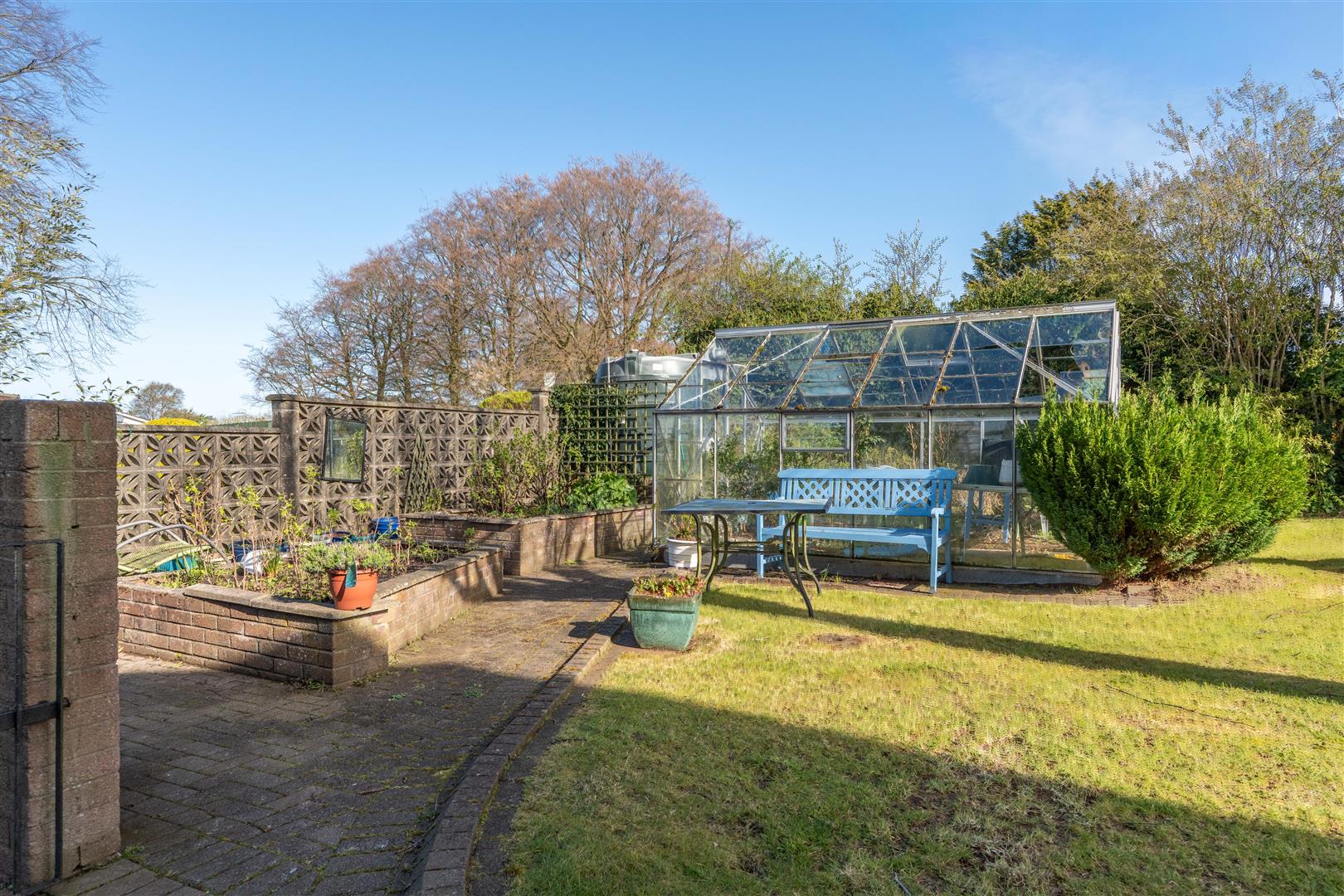 Garden to front in neat lawn and mature conifers. Asphalt drive with parking for 4 plus cars. Access to attached garage. Roller shutter door. Pavier brick drive to side. Gate to fully enclosed garden to rear in neat lawn, pavier brick pathway. Low level shrub display. Greenhouse.