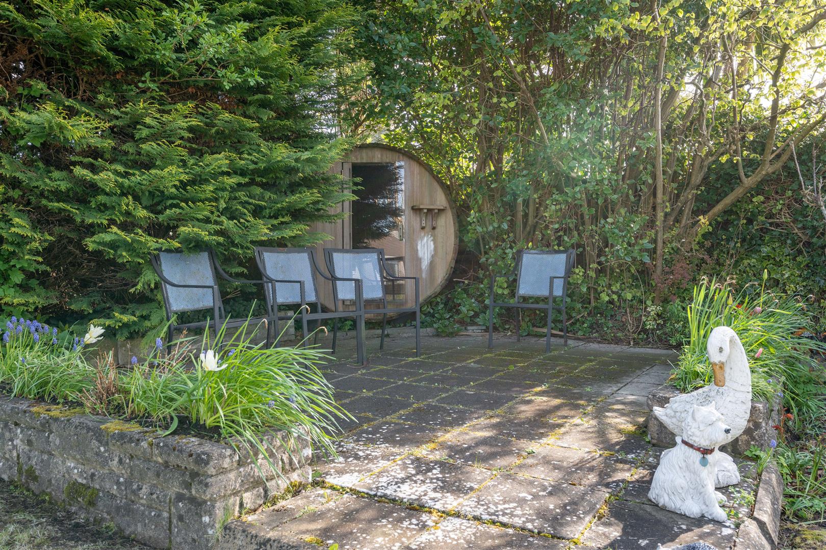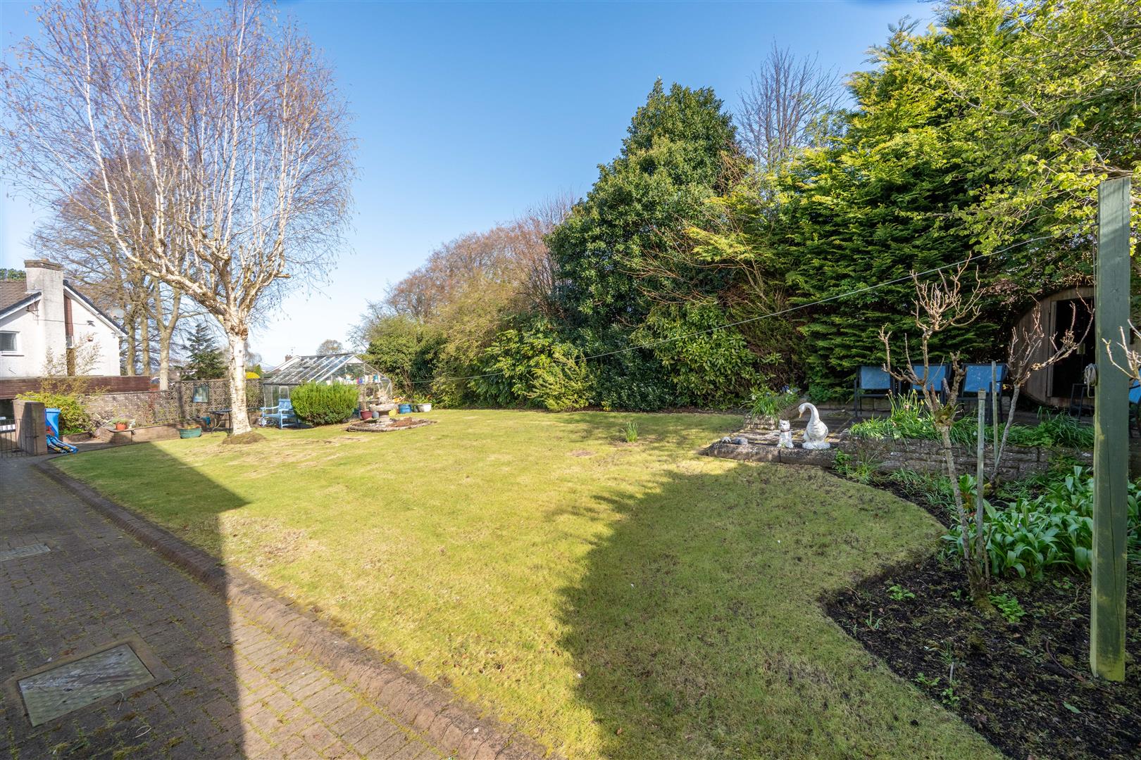 Asphalt driveway with access to attached garage / Boiler house and storeroom to rear / Generous gardens with elevated mature site / Gardens in neat lawn and paved patio areas