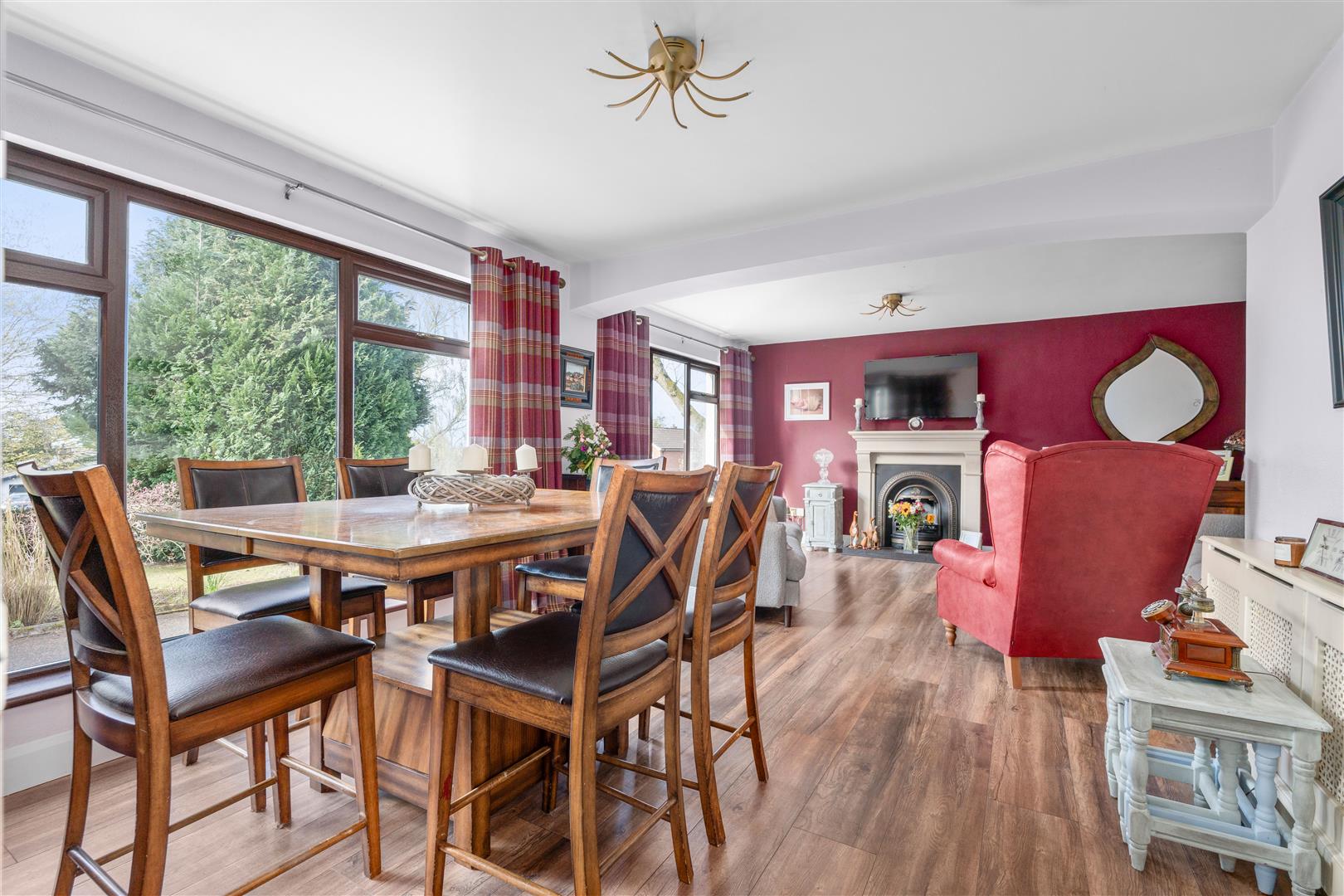 Dining room with feature corner window / Open to Living room 17'4 x 10'10 with open fire and feature sandstone surround (plumbed for gas)