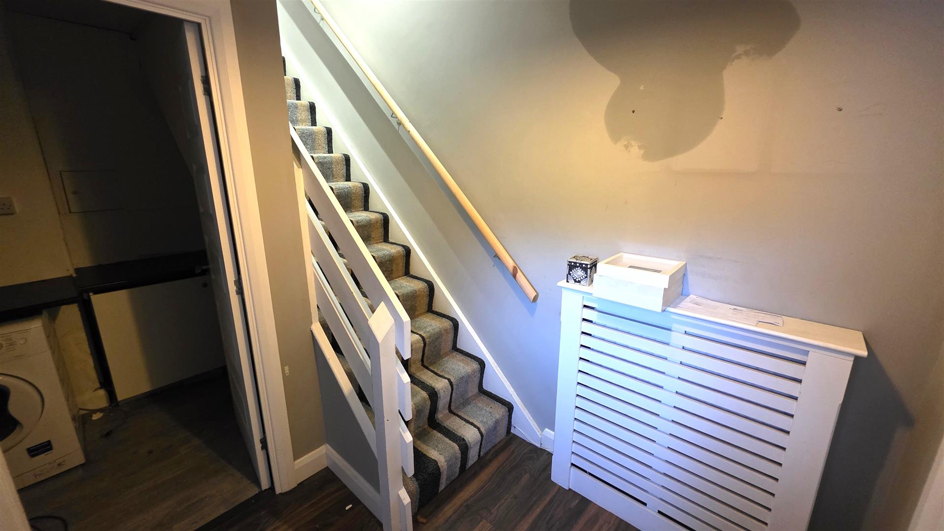 Low voltage downlights to stairs and landing. Former hotpress with tank removed and gas fired boiler installed. Access to loft.