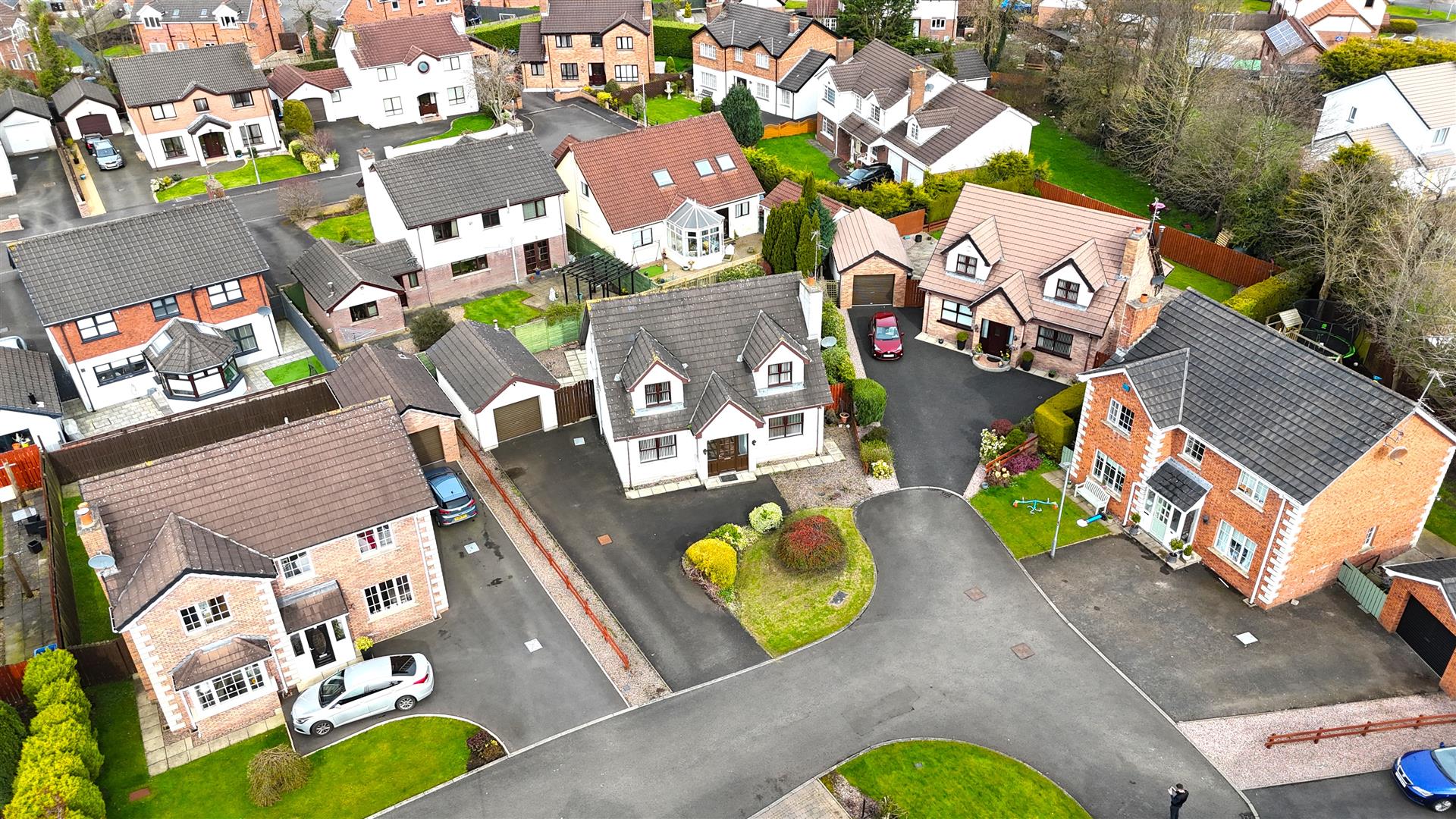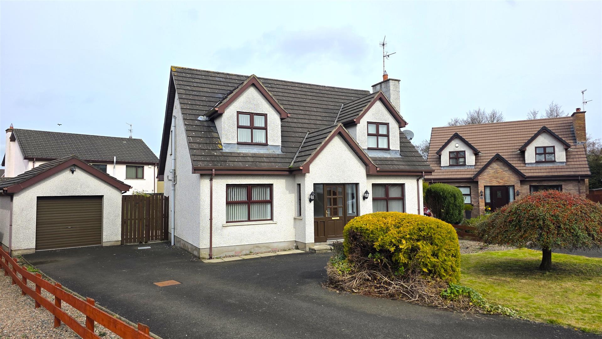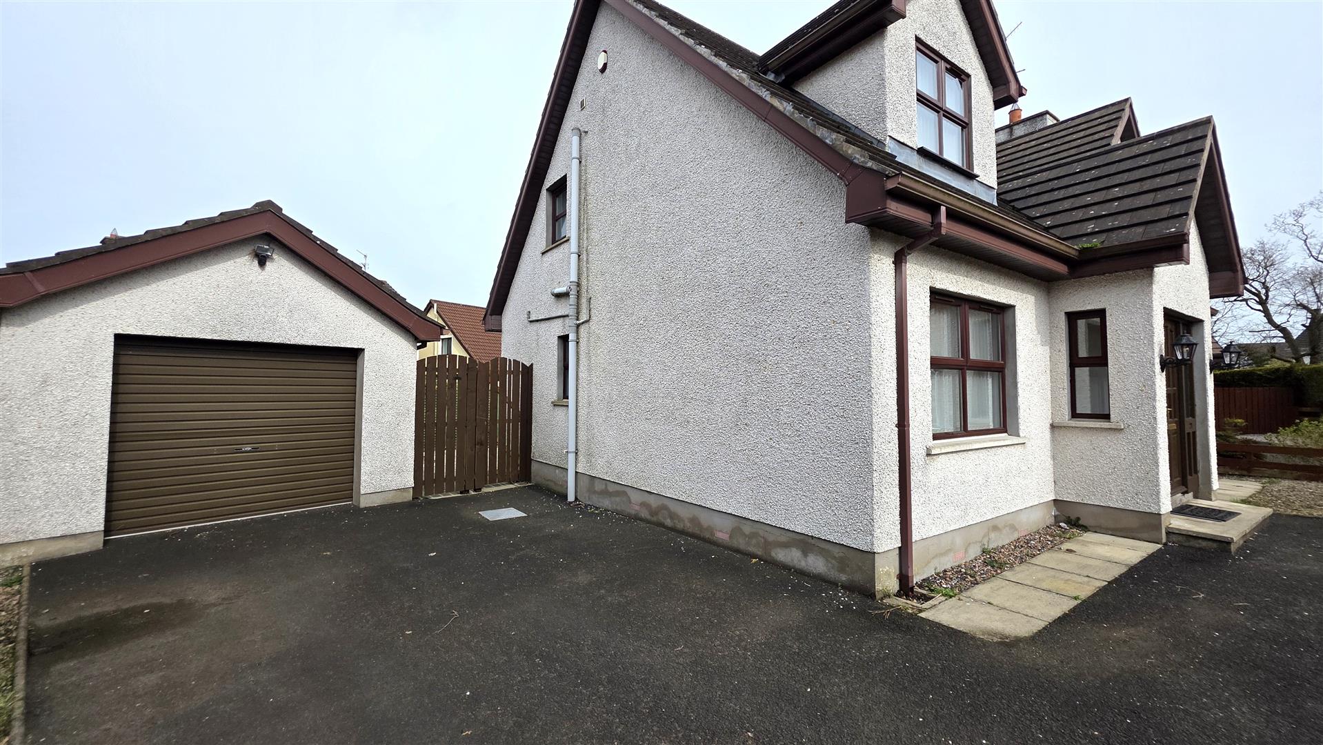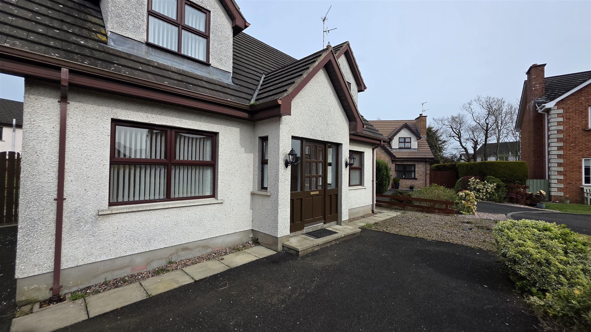This is an excellent opportunity for those looking to purchase a deceptively spacious four bed detached chalet style property in this incredibly sought after residential development on the outskirts of Randalstown. Occupying a generous mature site in an end of cul-d-sac position, this well appointed four bedroom home offers the flexibility of a ground floor bedroom with three further double bedrooms to the first floor. The spacious lounge boasts an open fire with feature surround together with solid wood floor and 15 pane bevelled glass double doors through to the generous kitchen with informal dining area and sunroom beyond. With a range of integrated appliances to include dishwasher, four ring halogen hob and "Neff" oven and separate grill together with a generous utility room and ground floor W/C, this property is likely to appeal to a wide range of potential purchasers. The three well appointed bedrooms are further complimented by a spacious bathroom with four piece suite to include panel bath and separate shower cubicle making this the ideal property for most family needs.