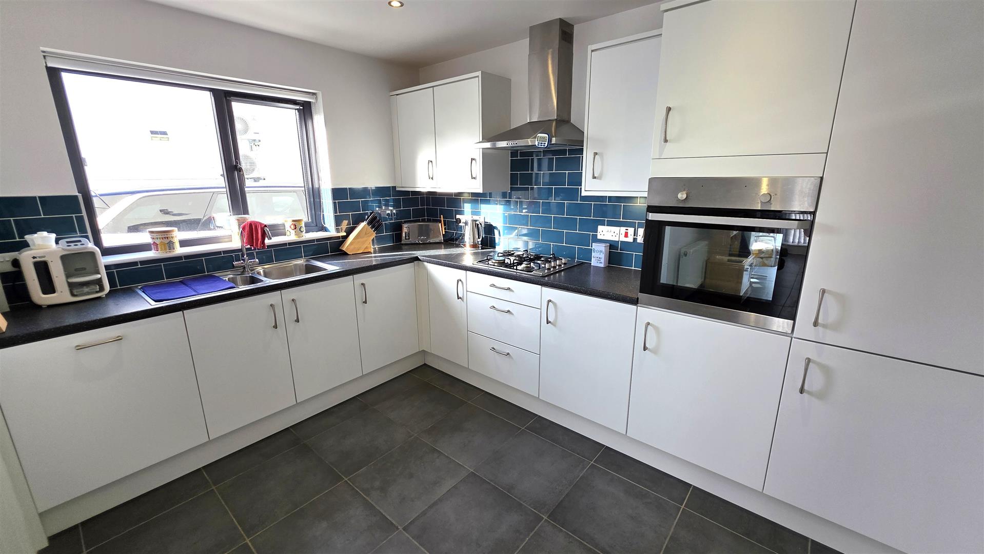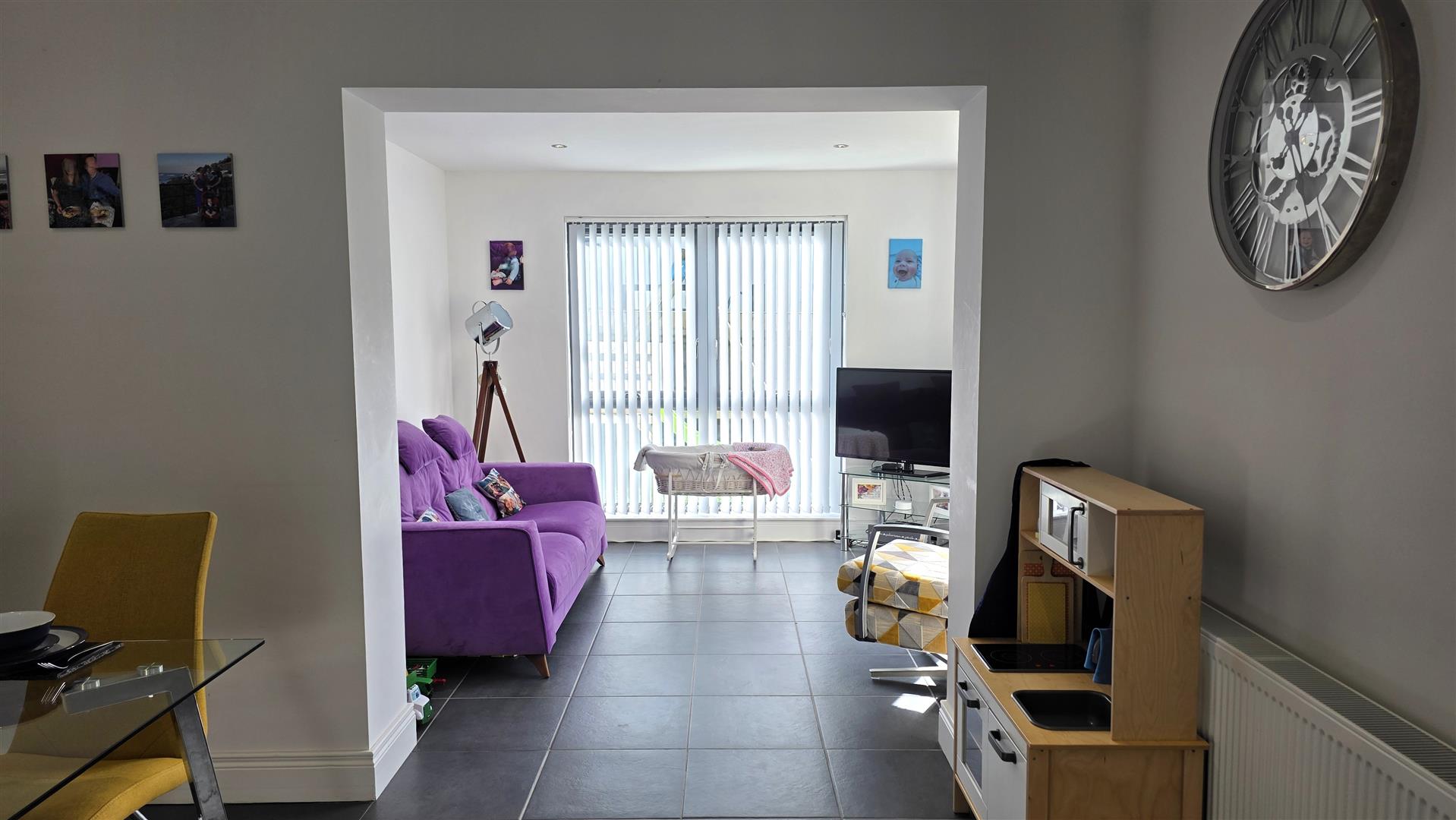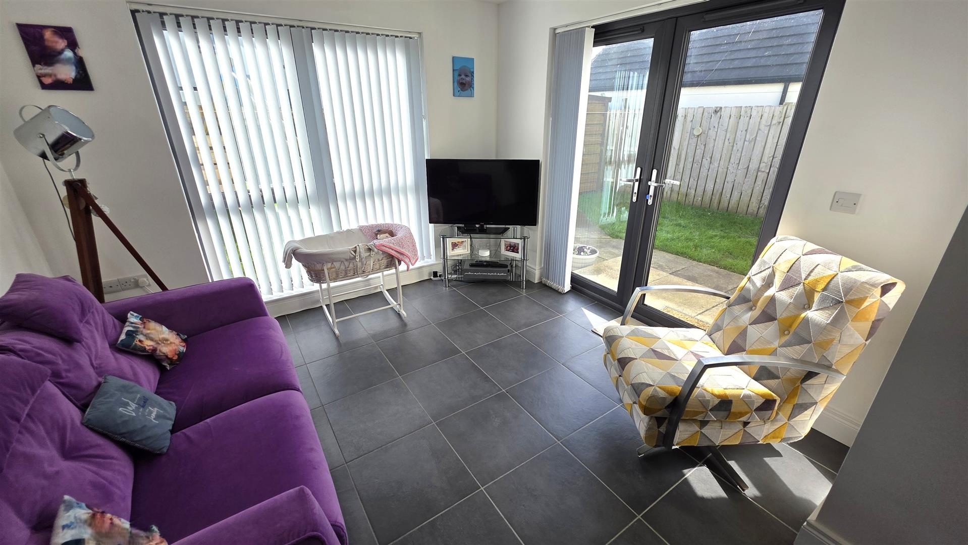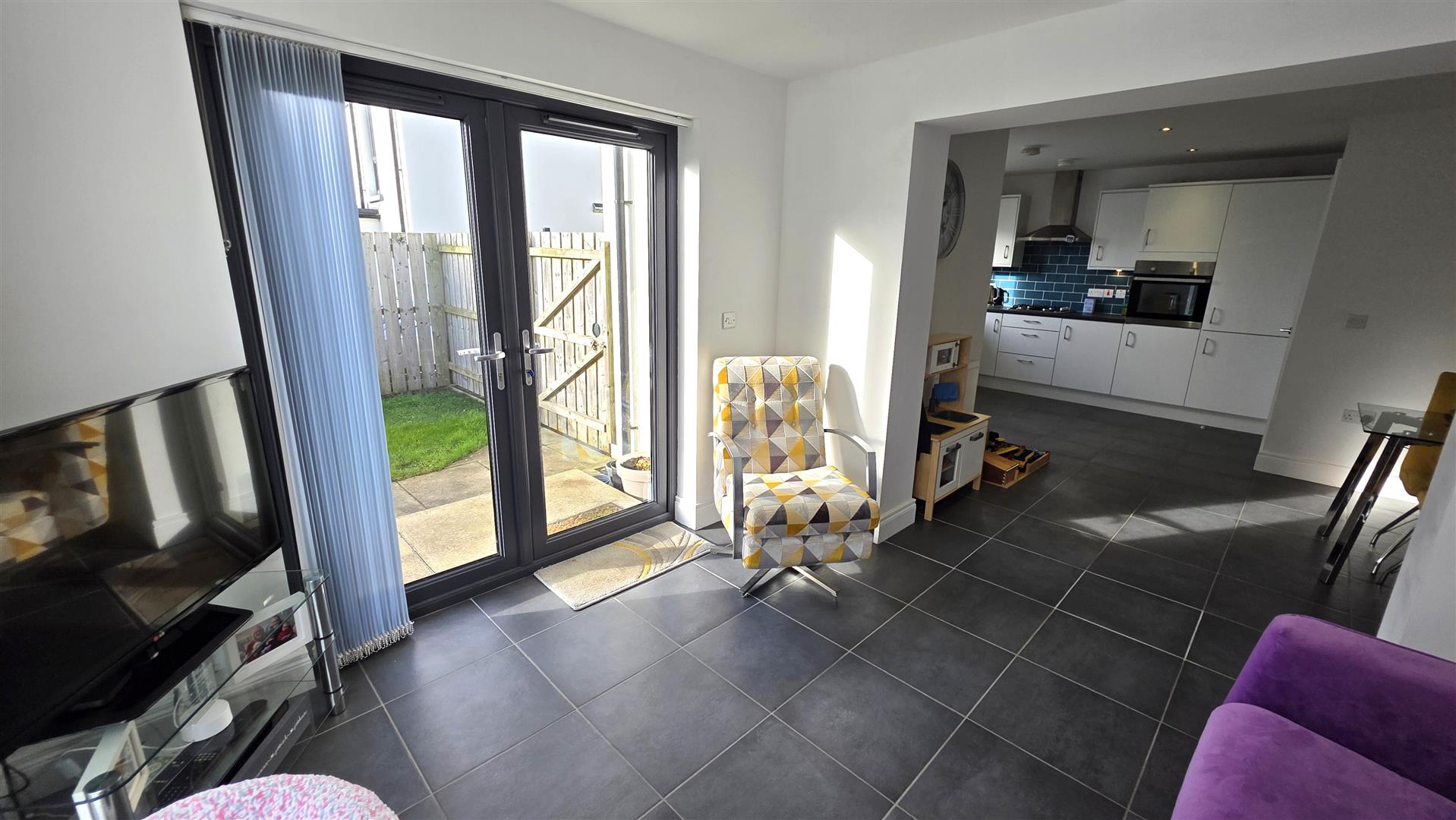 Fully tiled flooring. Graphite PVC 'French' patio doors to rear. Low voltage down lighting. Double radiator.