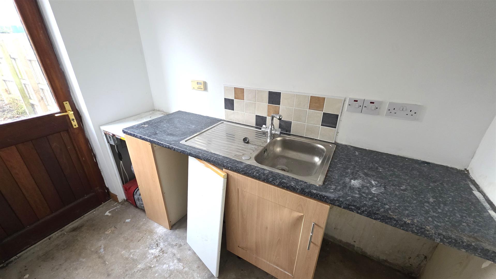 Matching beech effect low level kitchen units and work surfaces with single drainer stainless steel sink unit and chrome mixer tap. Plumbed for washing machine and space for tumble dryer. Single radiator. Double glazed hardwood door to rear.