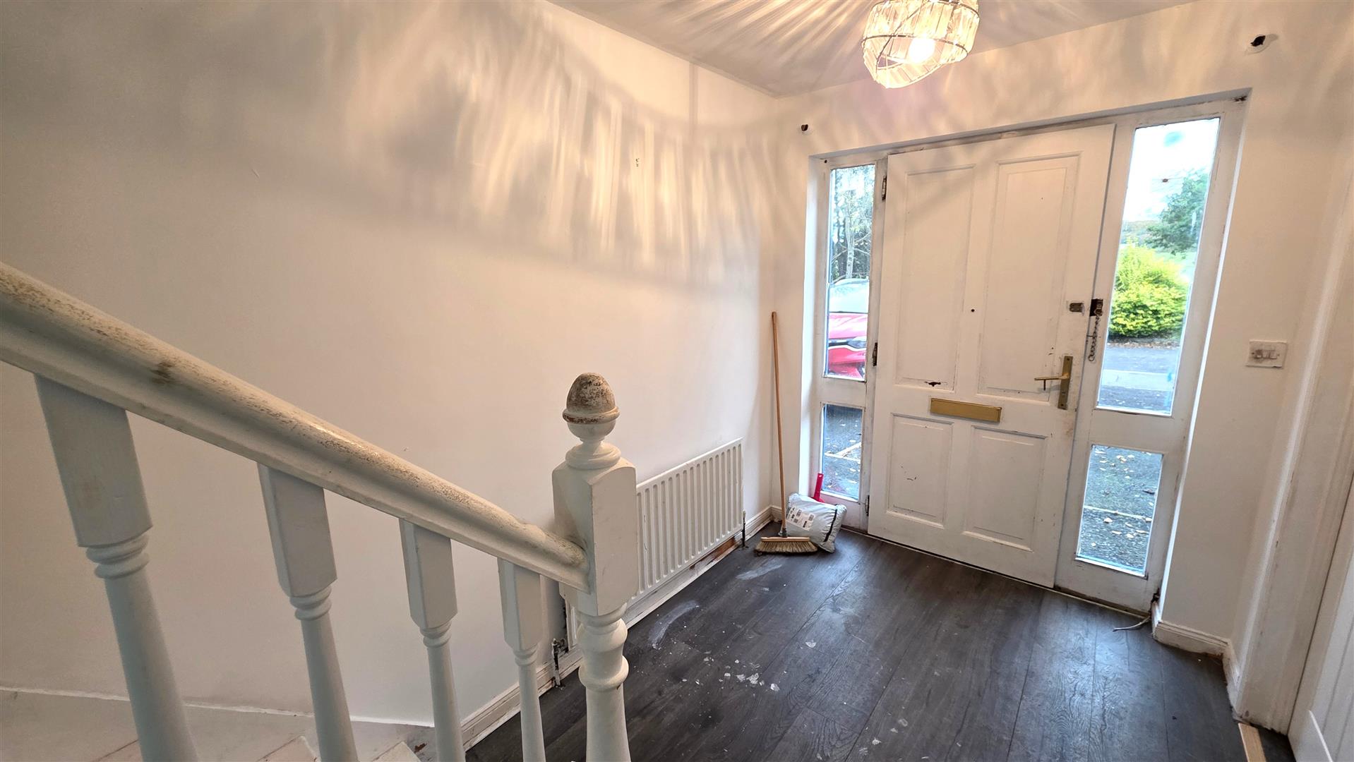 Entrance hall with wood laminate floor / Staircase to first floor / Ground floor W/C with modern white suite