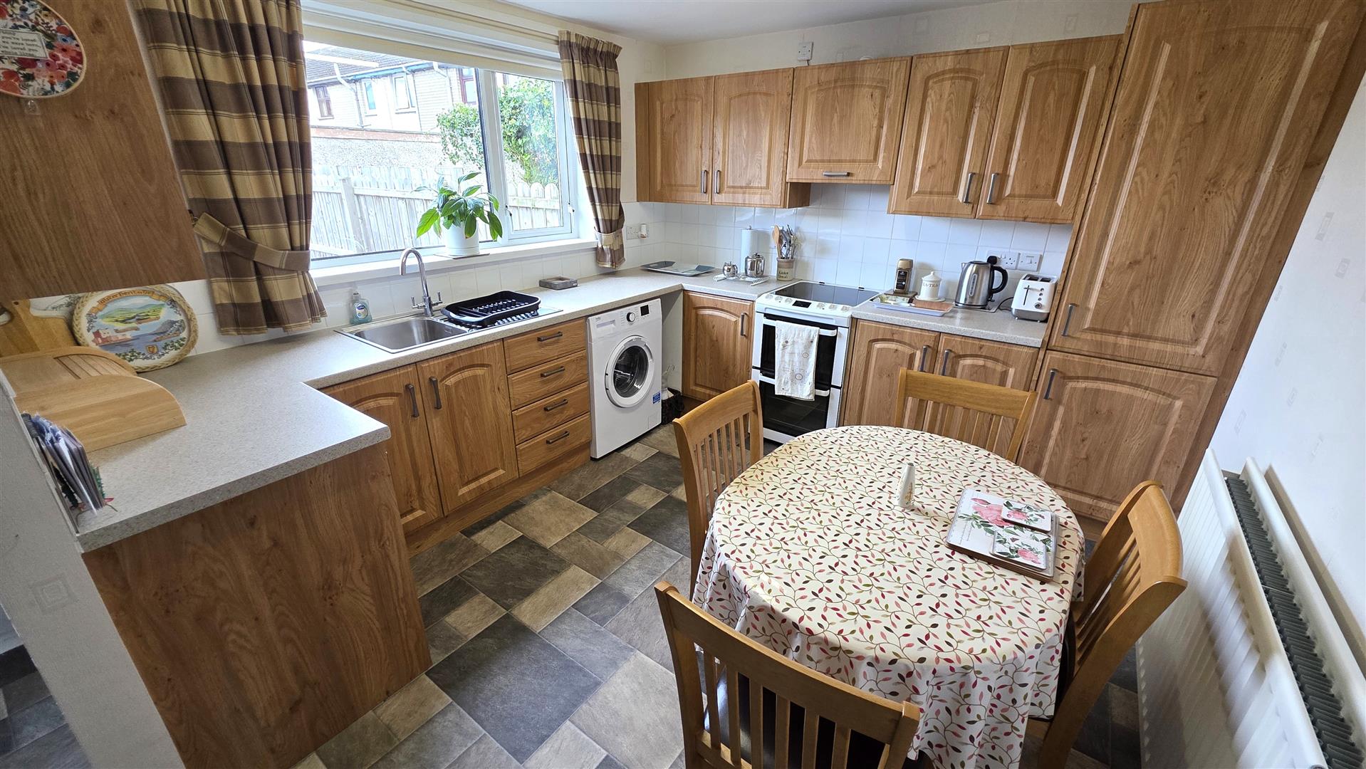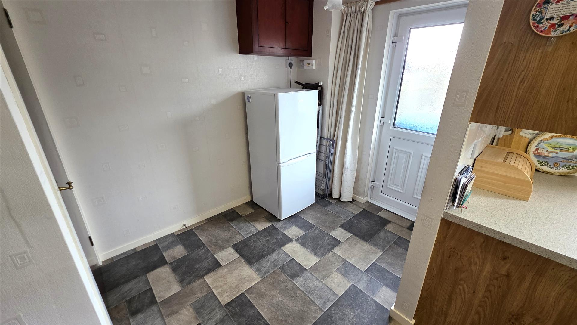 Full range of country style high and low level kitchen units with complimentary work surfaces and splashback tiling. Single drainer stainless steel sink unit with chrome mixer tap. Space for cooker with hooded overhead extractor fan. Space for a washing machine. Large understairs storage cupboard. Double radiator. PVC double glazed door to the rear.
