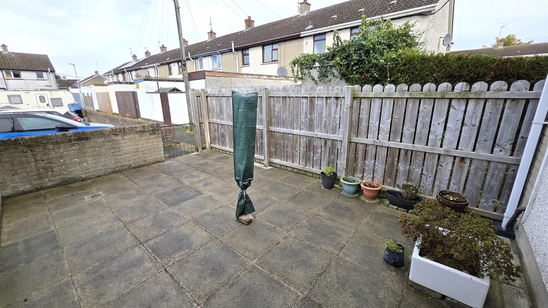 Fully enclosed and fully paved garden with 6Ft timber fencing and cast iron pedestrian gate to rear. Outside lighting. Mixed stone bedding.