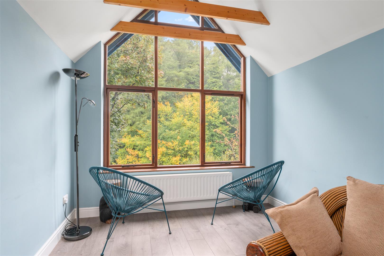 (Max) Feature corner open fire with sandstone effect surround and hearth. Semi-vaulted ceiling with cathedral style window commanding views over the Six Mile Water and heavily wooded bank beyond. Exposed timber beams. 2No. double radiators.