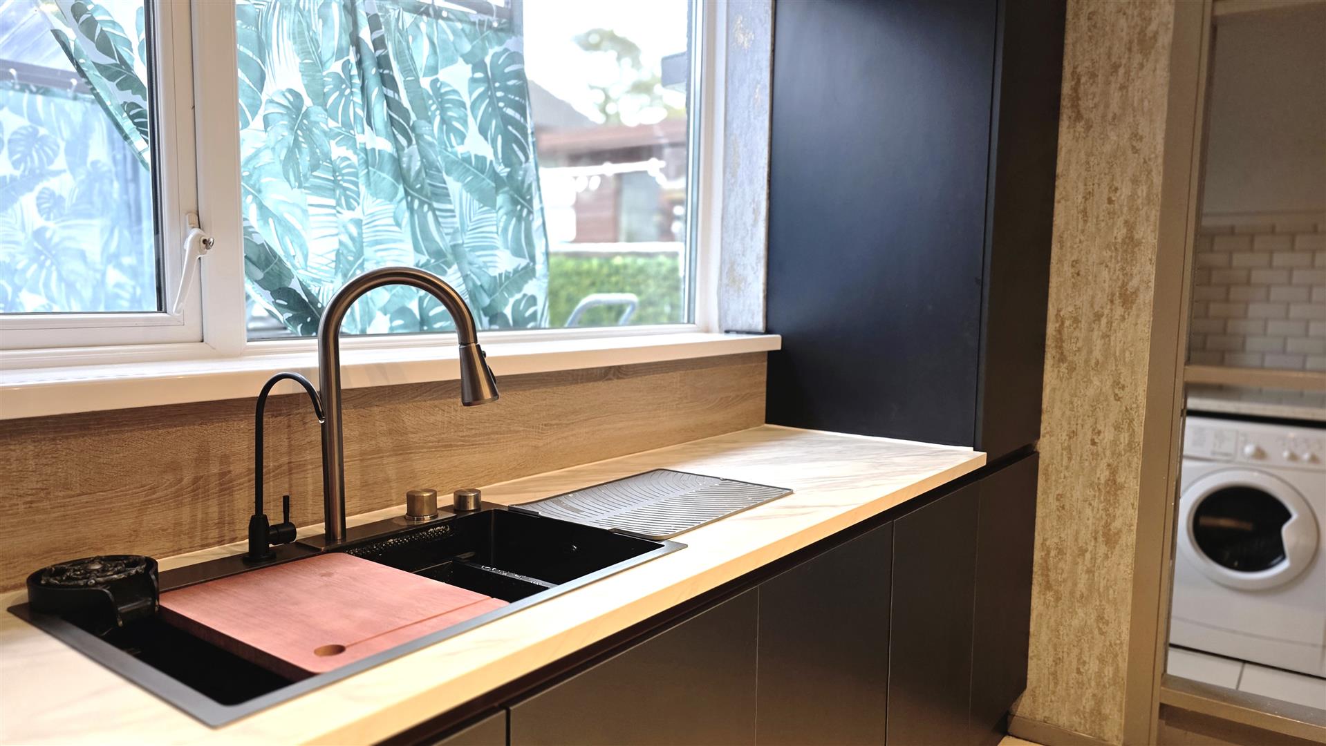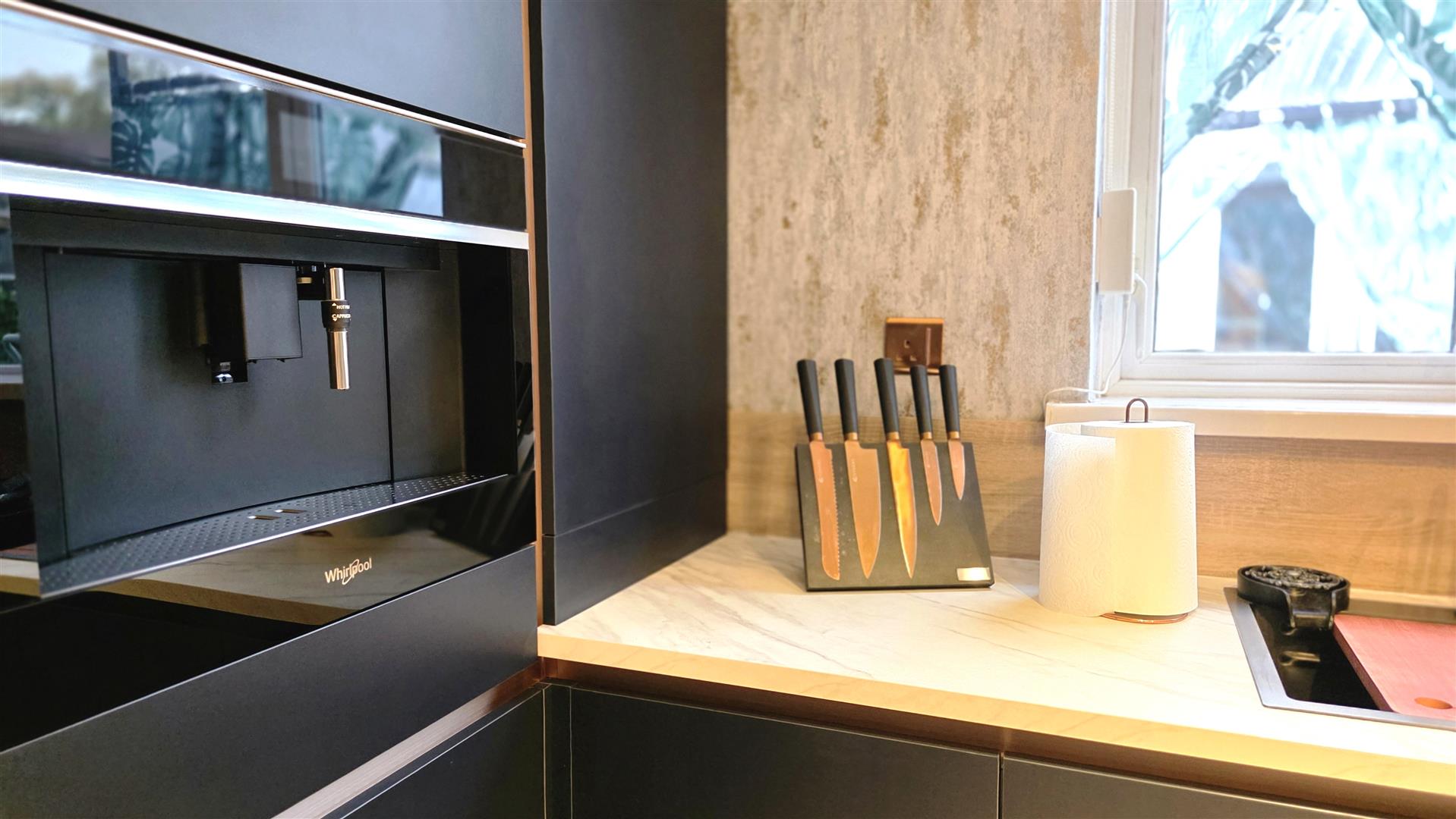 Recently fitted Indigo and copper handless kitchen