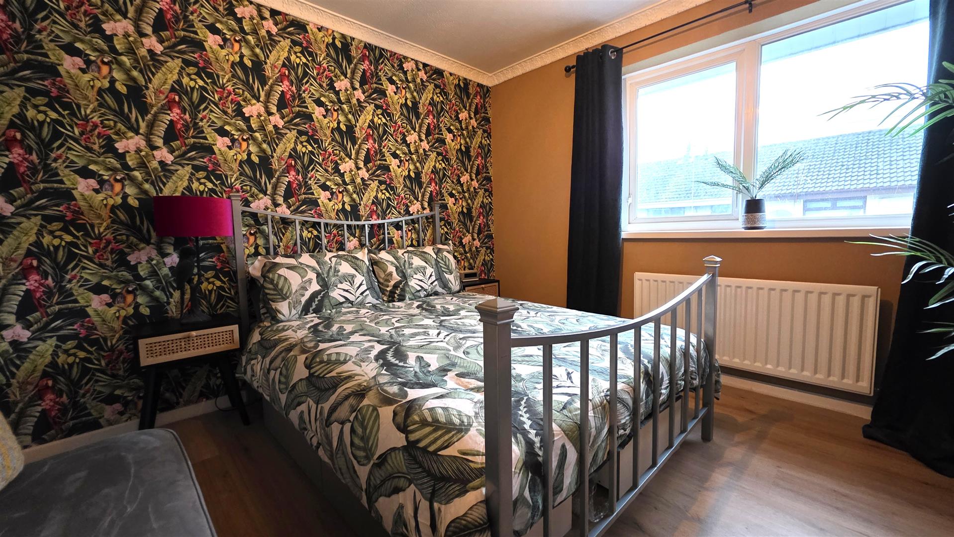 Wood laminate flooring. Single radiator.