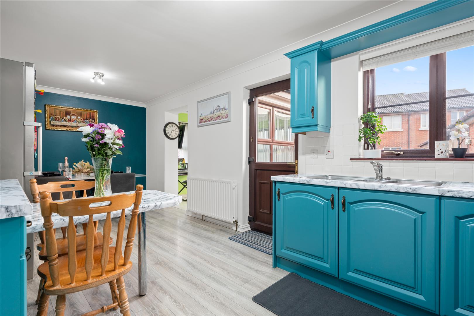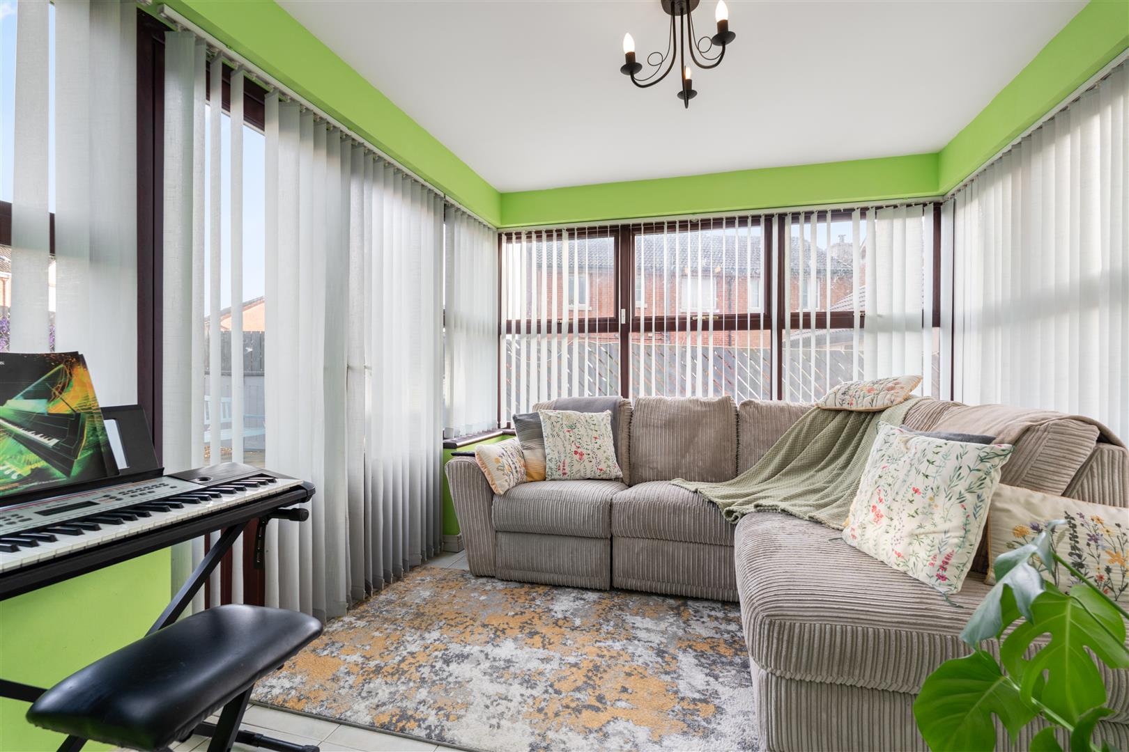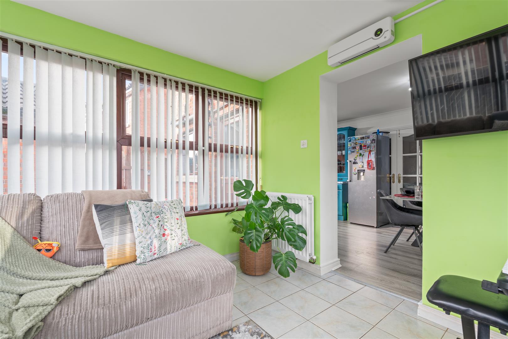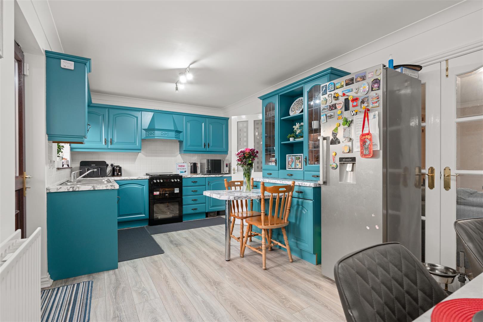 Internally, the accommodation is both spacious and well laid out. The generous living room features French doors leading to a spacious kitchen with informal dining area, which in turn opens into a bright rear sunroom overlooking the garden-ideal for modern family living. To the first floor are three generous bedrooms, including a principal bedroom with ensuite facilities.