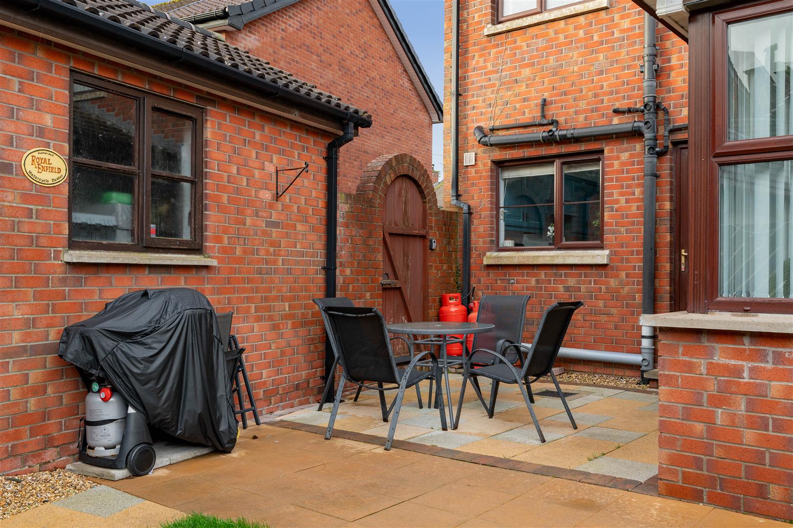 Fully enclosed rear garden in paved patio and neat lawn. Gold stone display. Open to side garden in neat lawn and raised timber displays with gold stone. Raised paved patio with covered outdoor bar area. 6Ft. timber fencing. Attached boiler house with gas fired boiler. Outside light.