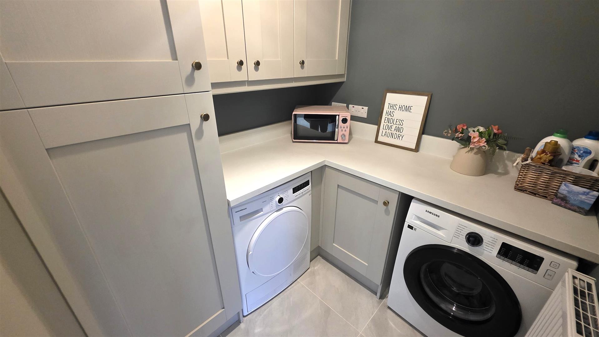 Utility with matching mid grey coloured high and low level units / Plumbed for washing machine and space for a tumble dryer / Concealed wall mounted gas boiler