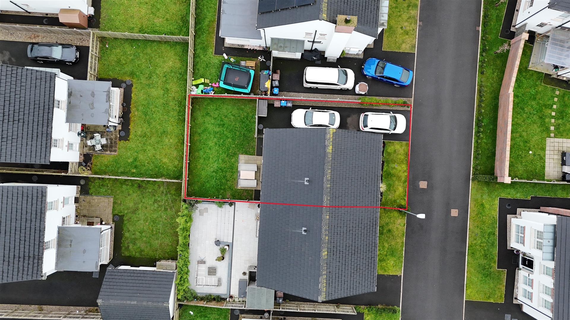 Tarmac drive with space for up to three cars. Neat lawn and well stocked flow bed boarder. Outside lighting. Timber pedestrian gate to the rear.