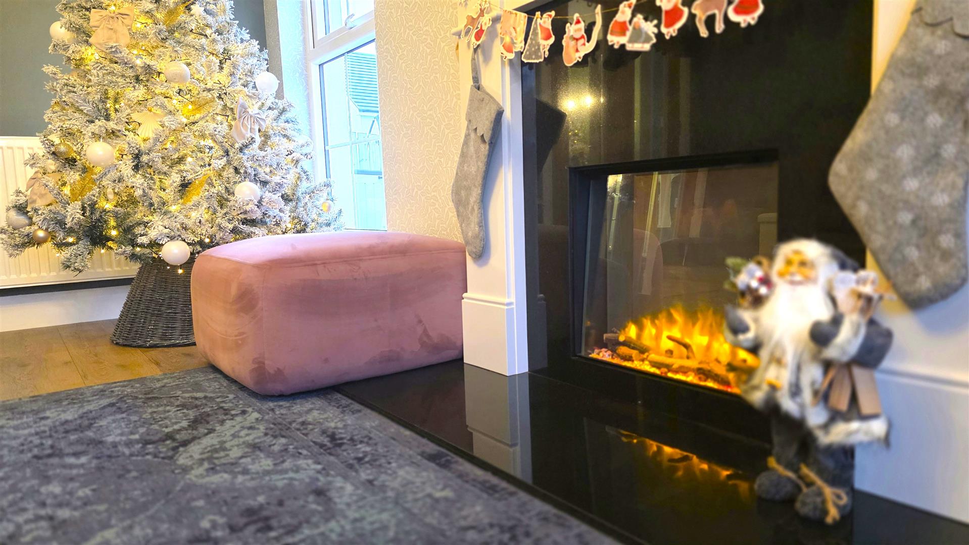 Living room 16'4 x 11'9 with feature contemporary style electric fireplace / Glazed double doors to;