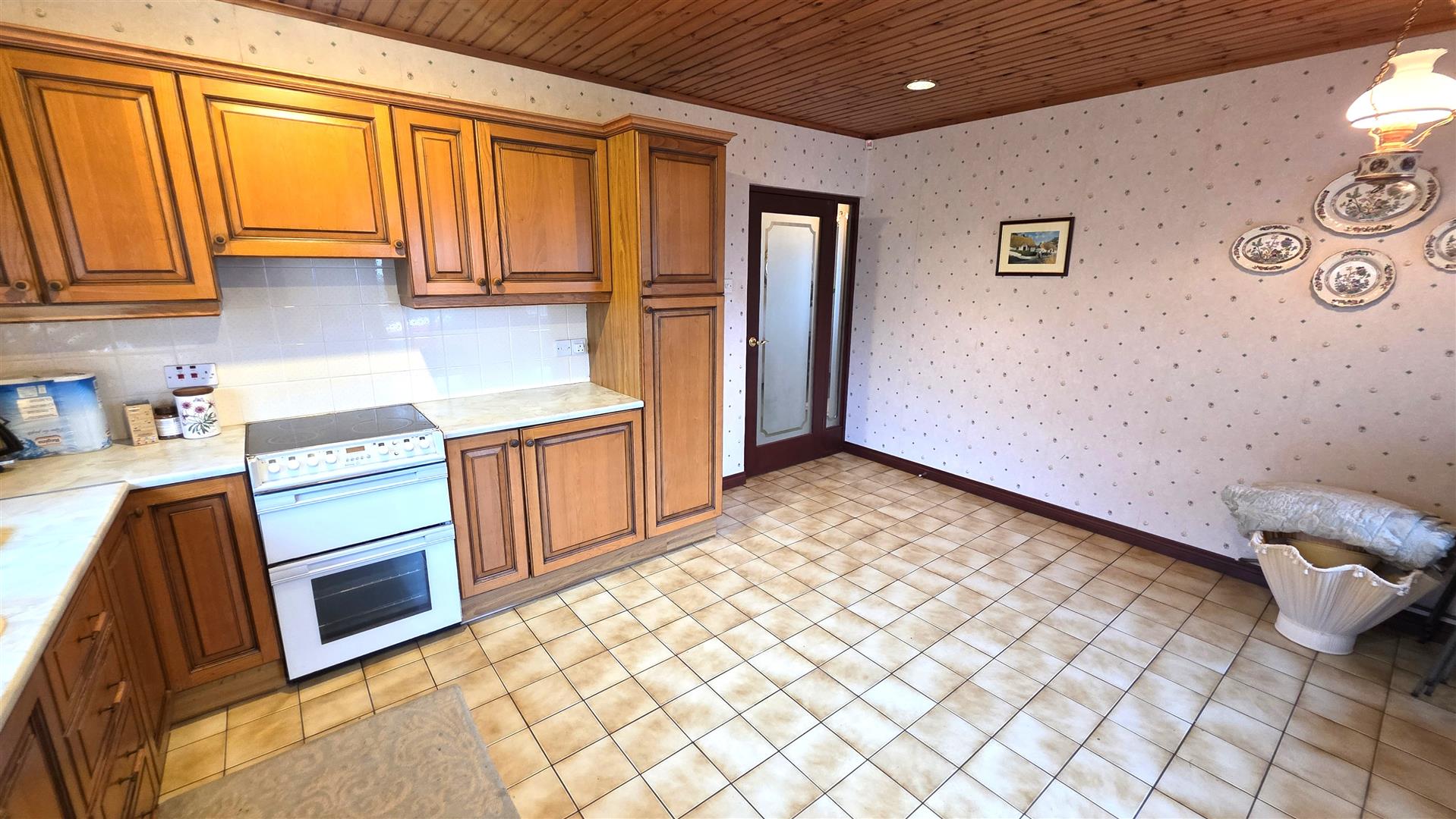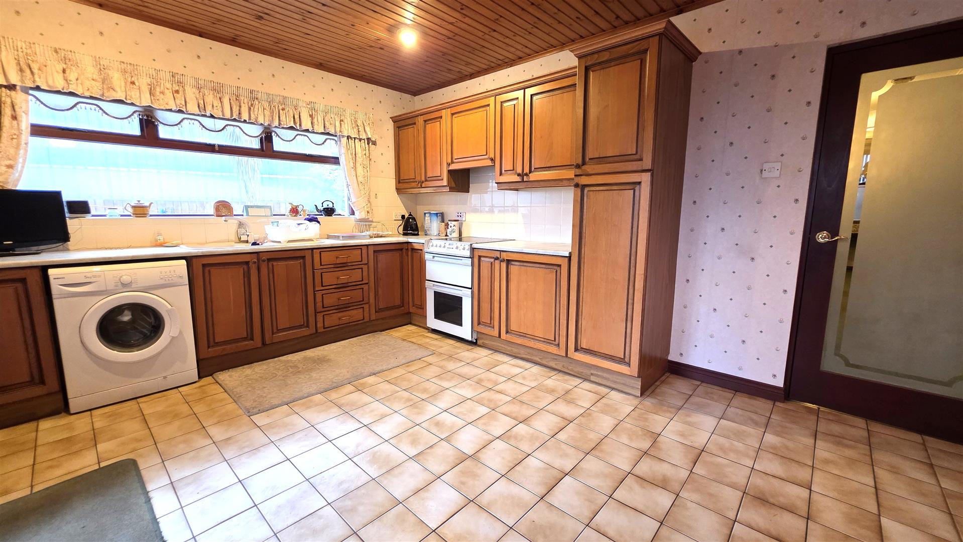 Full range of solid oak high and low level kitchen units with complimentary work surfaces and splashback tiling. One and one quarter bowl stainless steel sink units with mixer tap. Space for cooker with concealed overhead extractor fan. Integrated low level fridge. Space for washing machine. Fully tiled floor. Double radiator. Hardwood door with sidelights to side.