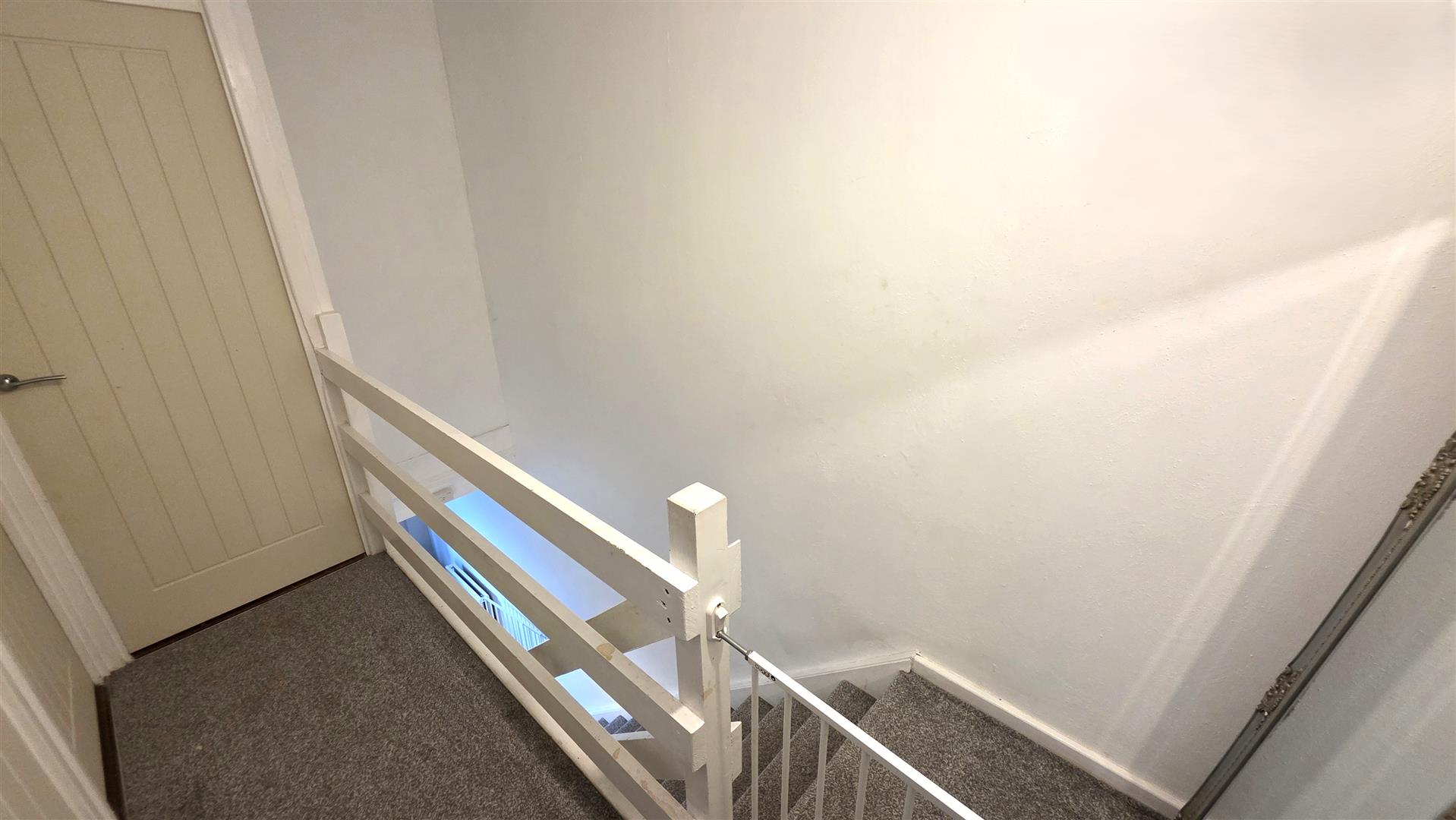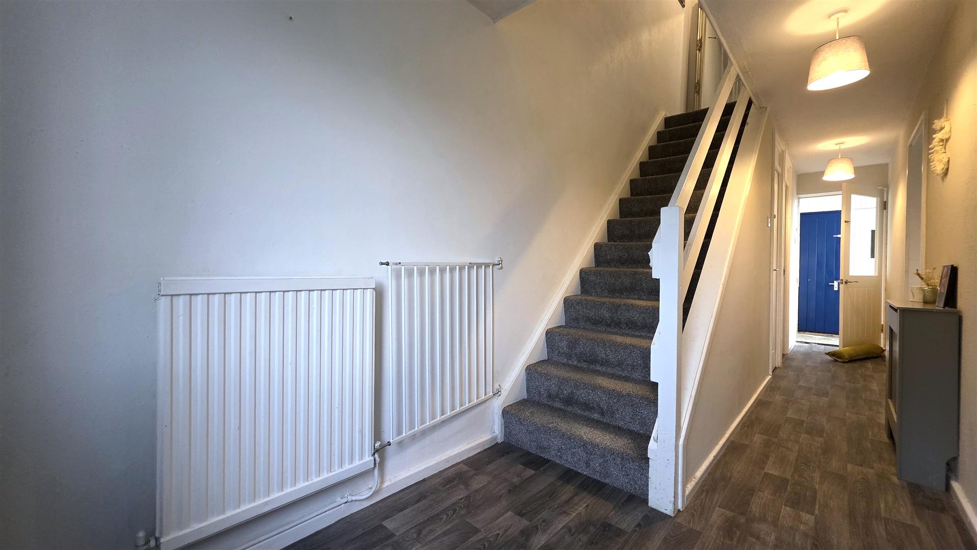 Stair case to first floor with painted wooden hand rail. Access to understair storage. Double and single radiators.