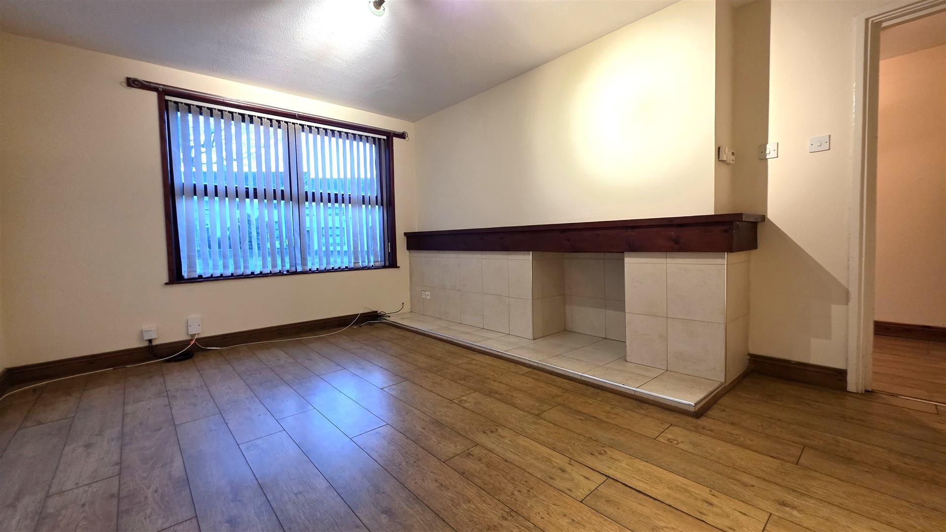Living room 15 x 10 8 with feature tiled fireplace inset and hearth / Wood laminate floor