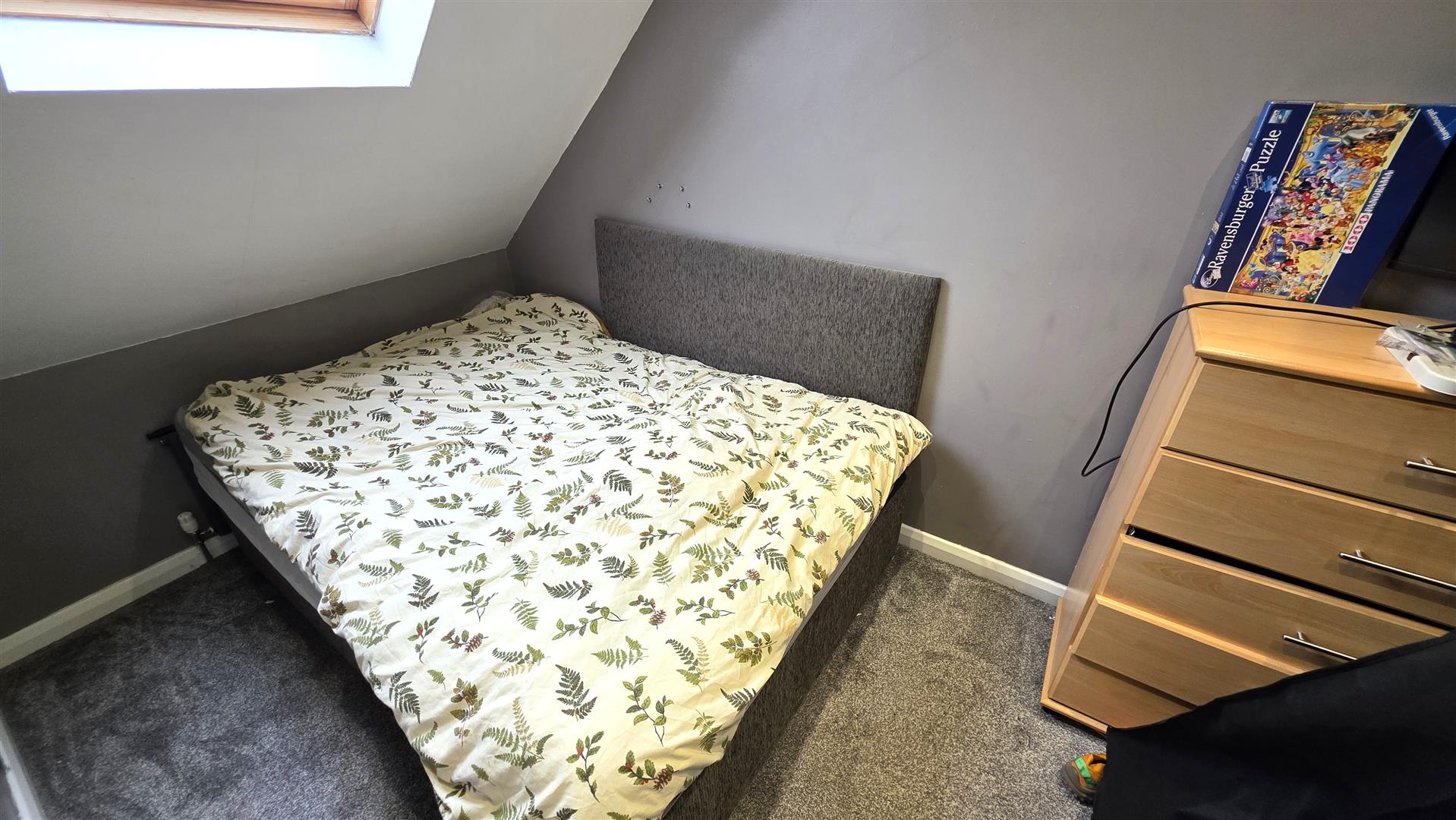 "Velux" double glazed roof light. Contemporary style radiator.
