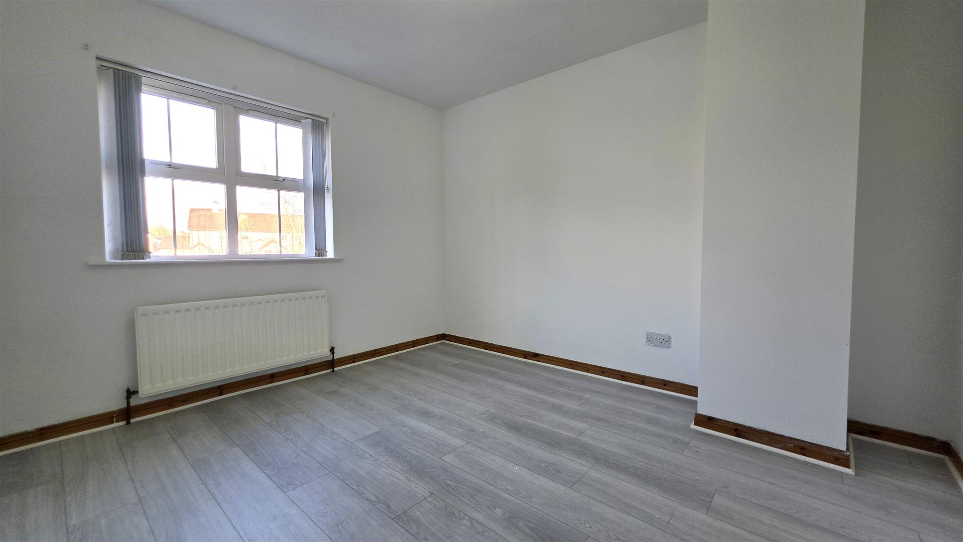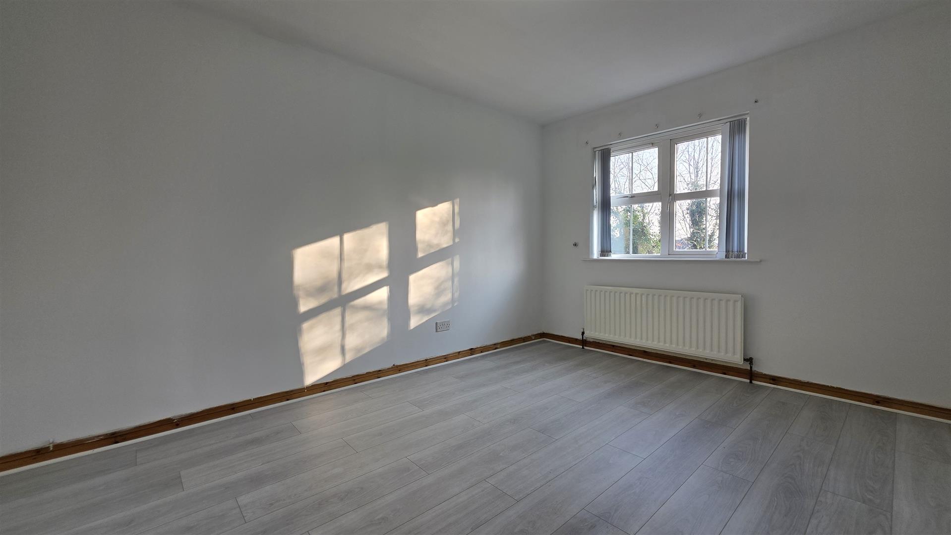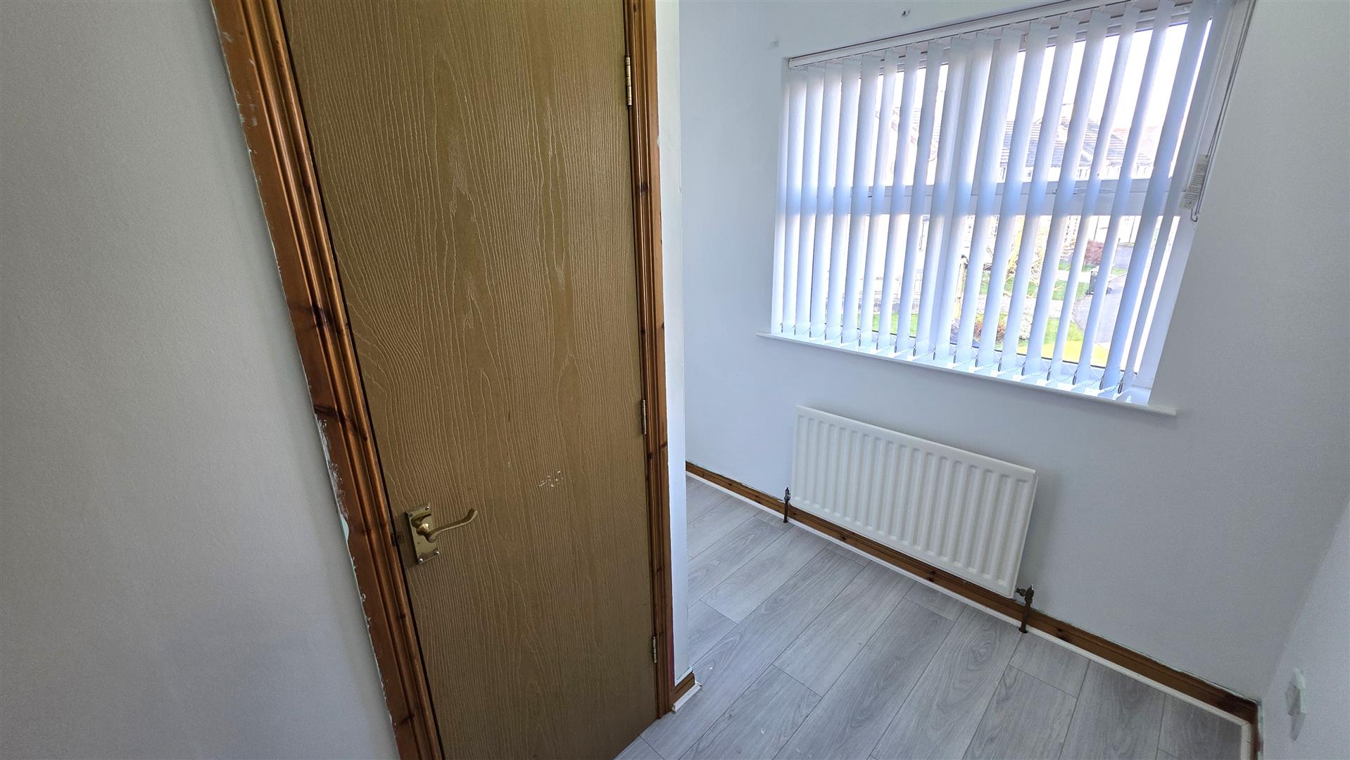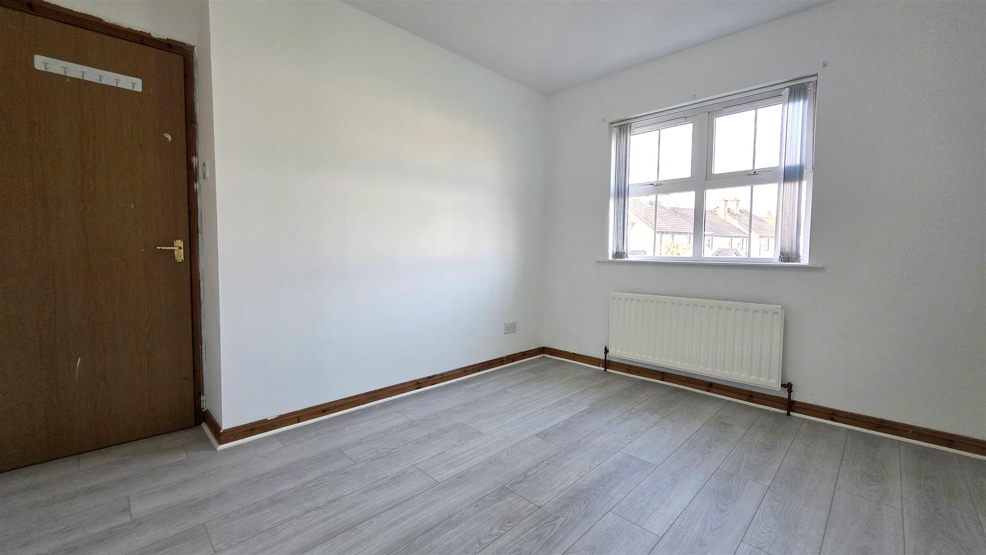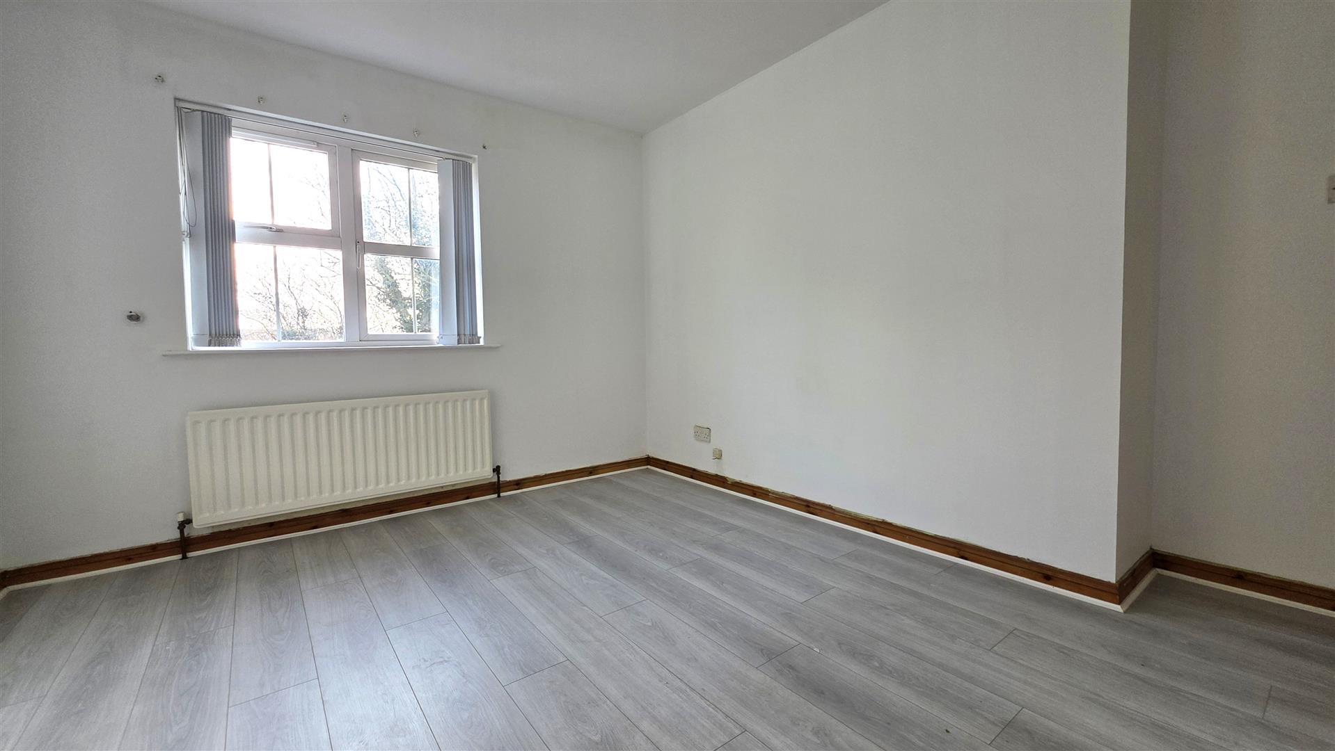 Wood laminate flooring. Single radiator.