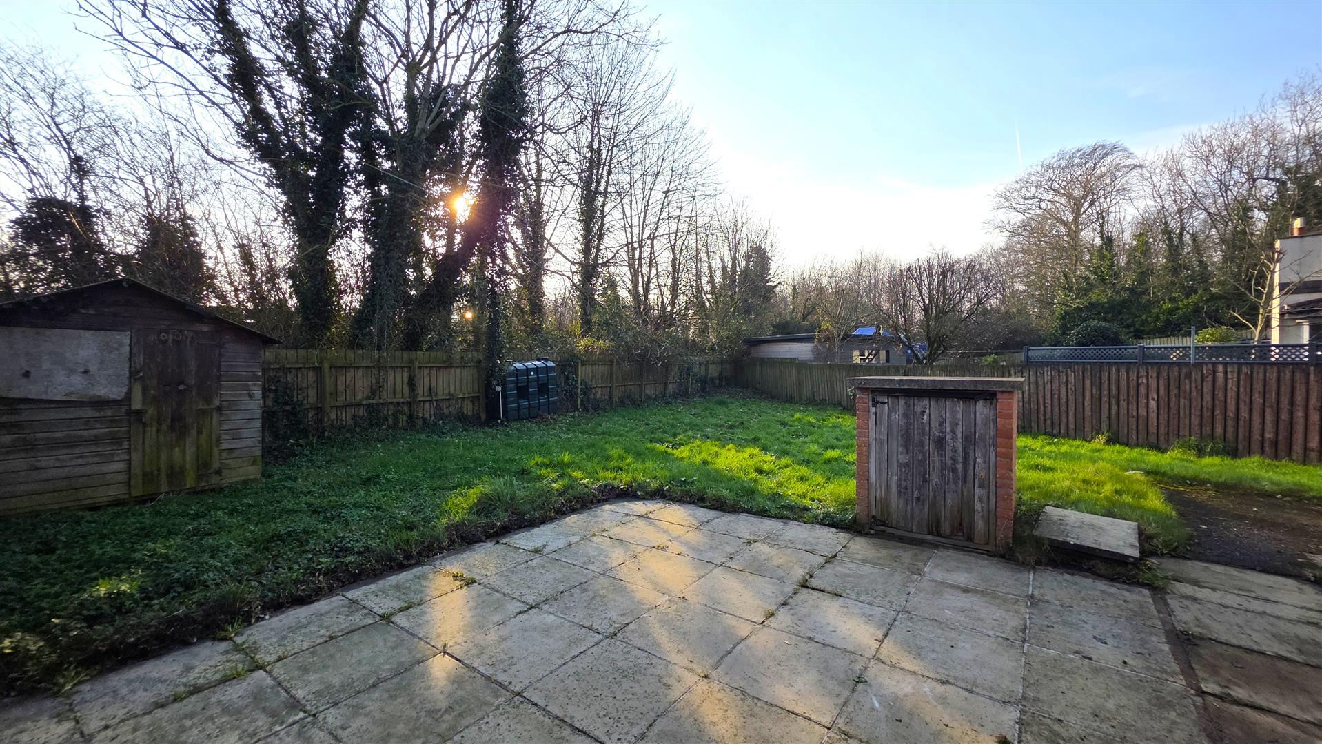 Large corner site with substantial rear garden offering excellent sun orientation