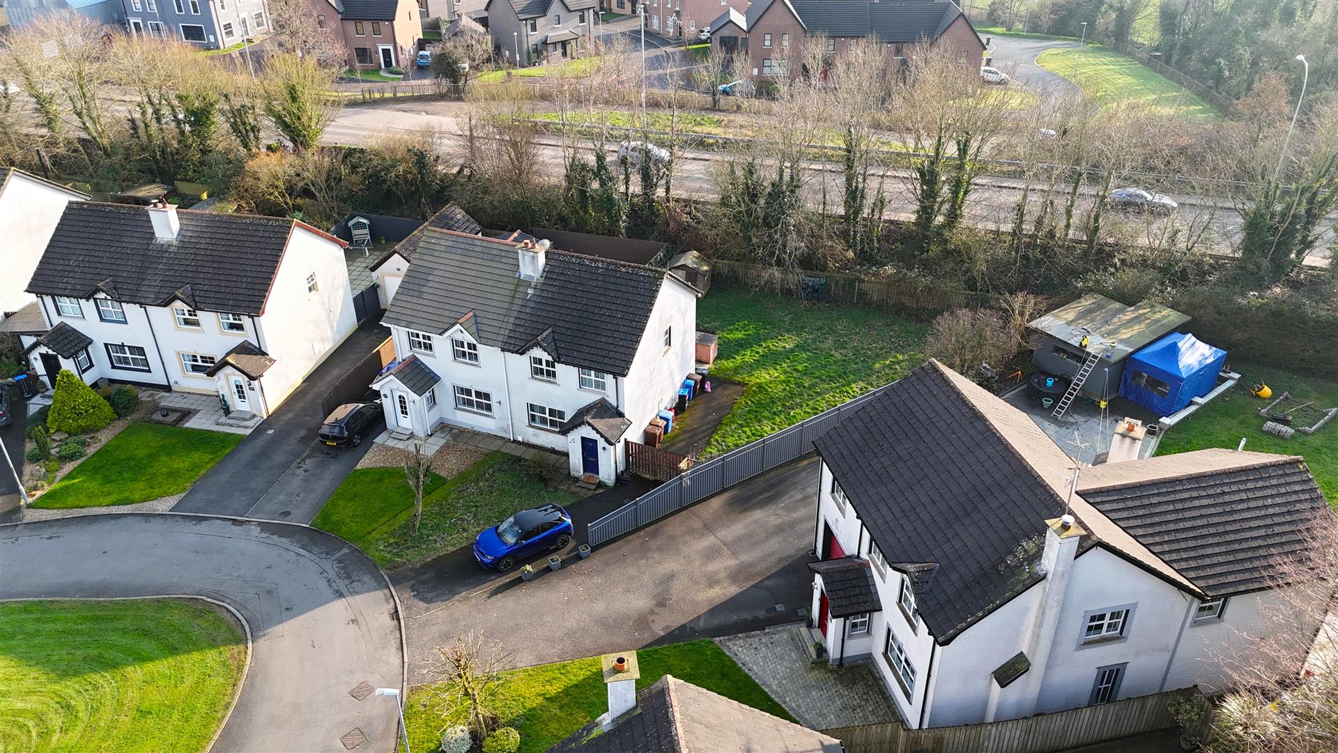 We are delighted to offer this well appointed three bedroom semi-detached house on a large corner site with substantial rear garden offering superb sun orientation. This is a rare opportunity to purchase a deceptively spacious three bedroom semi-detached house occupying one of the largest sites in this most sought after development on the outskirts of Antrim town. The property offers generous family accommodation with the benefit of a large site with excellent sun orientation and open aspect to rear together with an outlook onto open green area at the front. Ideal opportunity for first time buyers and young families alike, early viewing is strongly recommended.