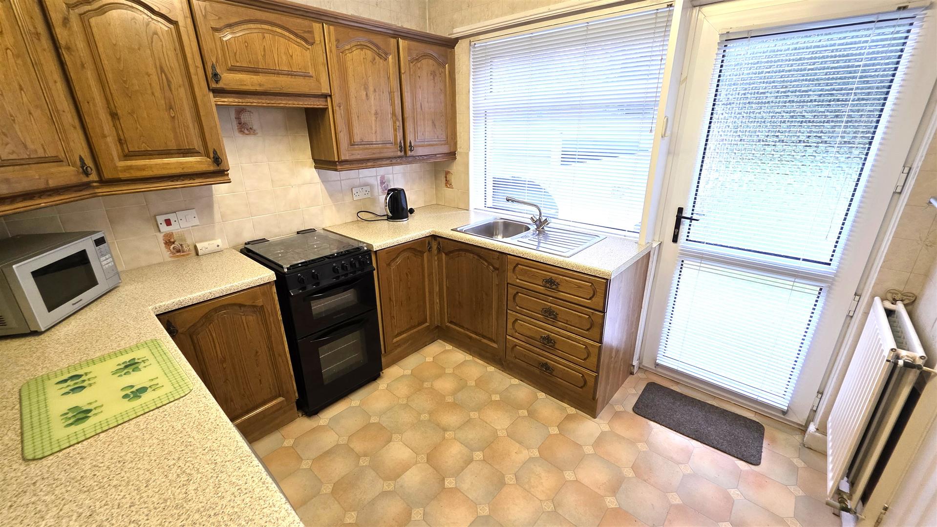 PVC sliding patio doors to the rear. Double radiator.