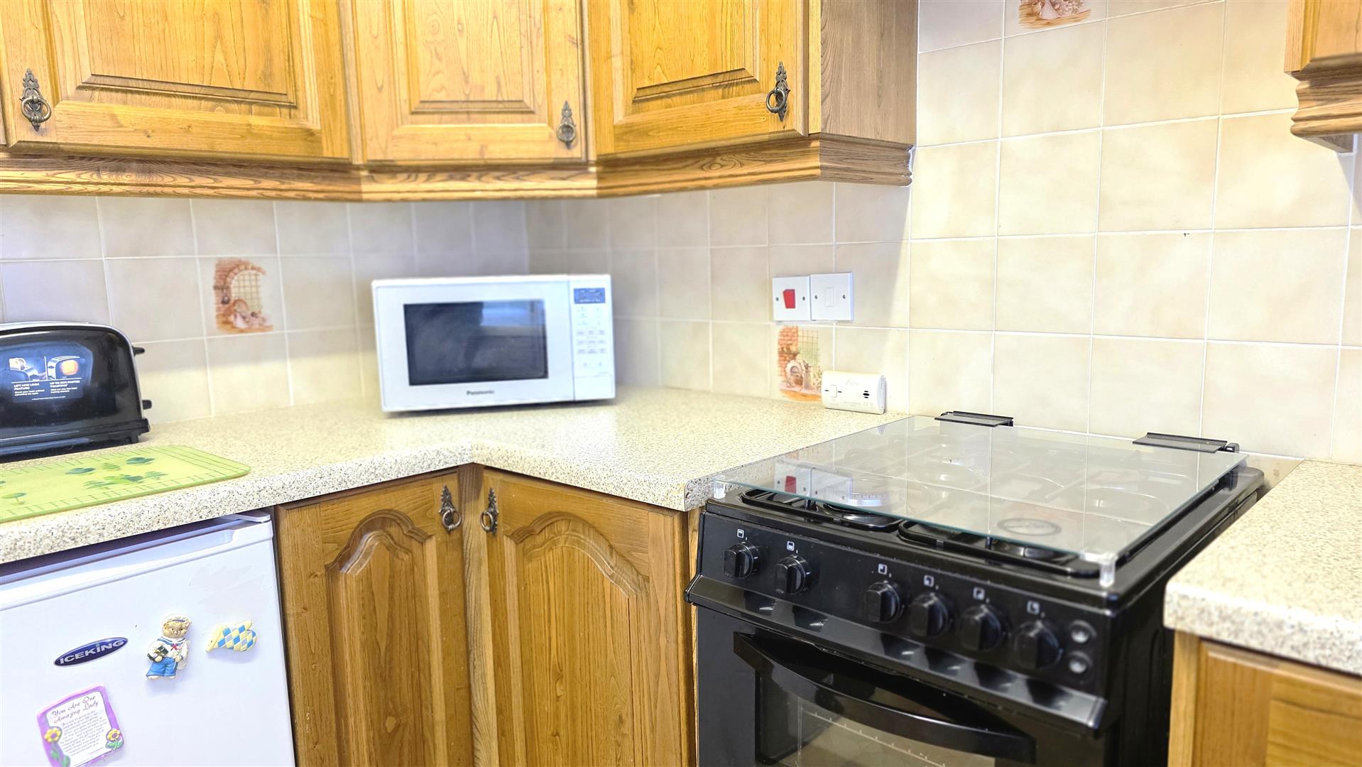 Space for cooker and low level fridge freezer / Additional integrated larder cupboard and high and low level storage