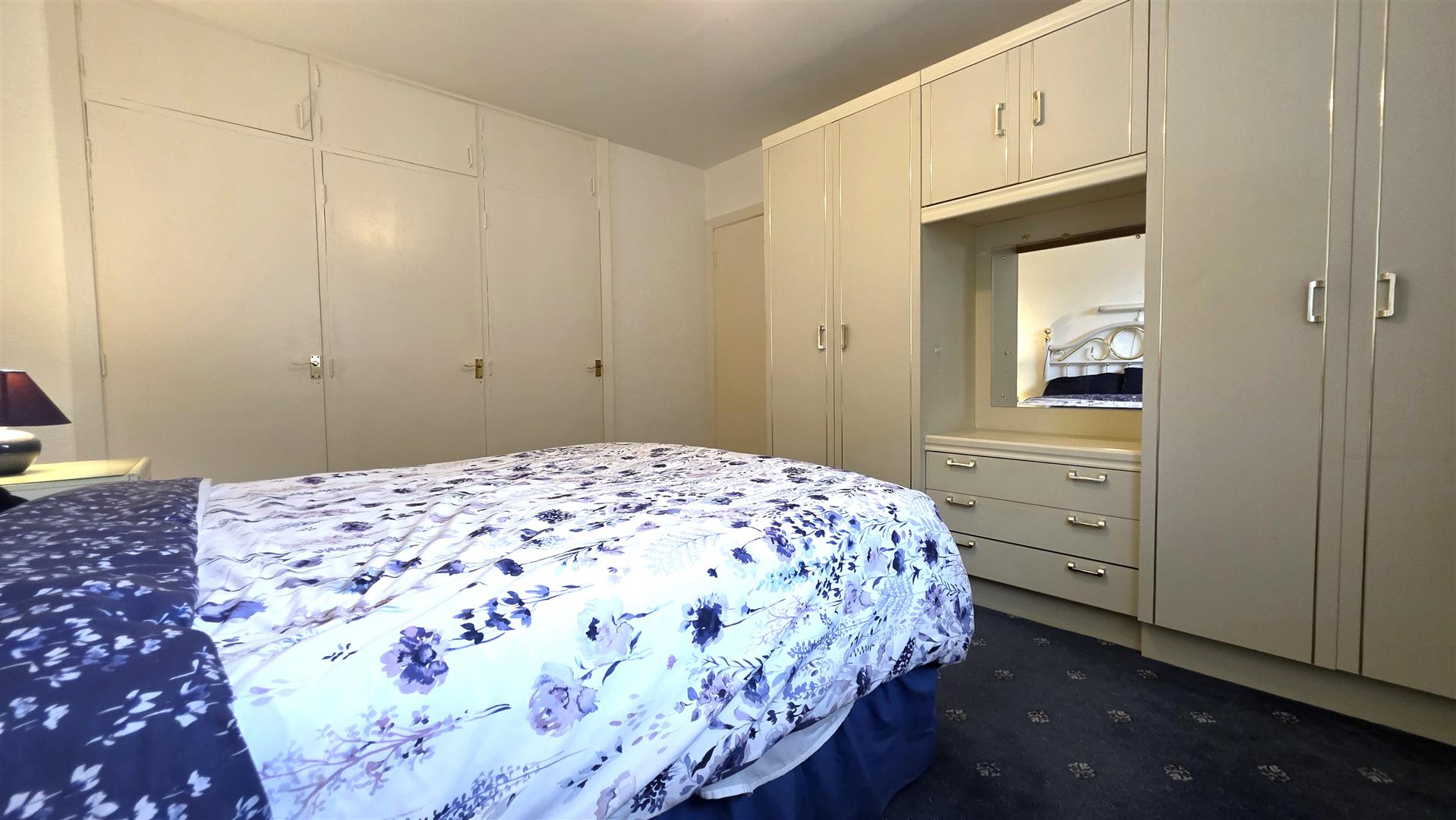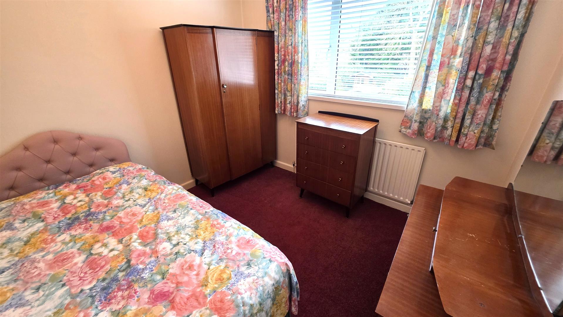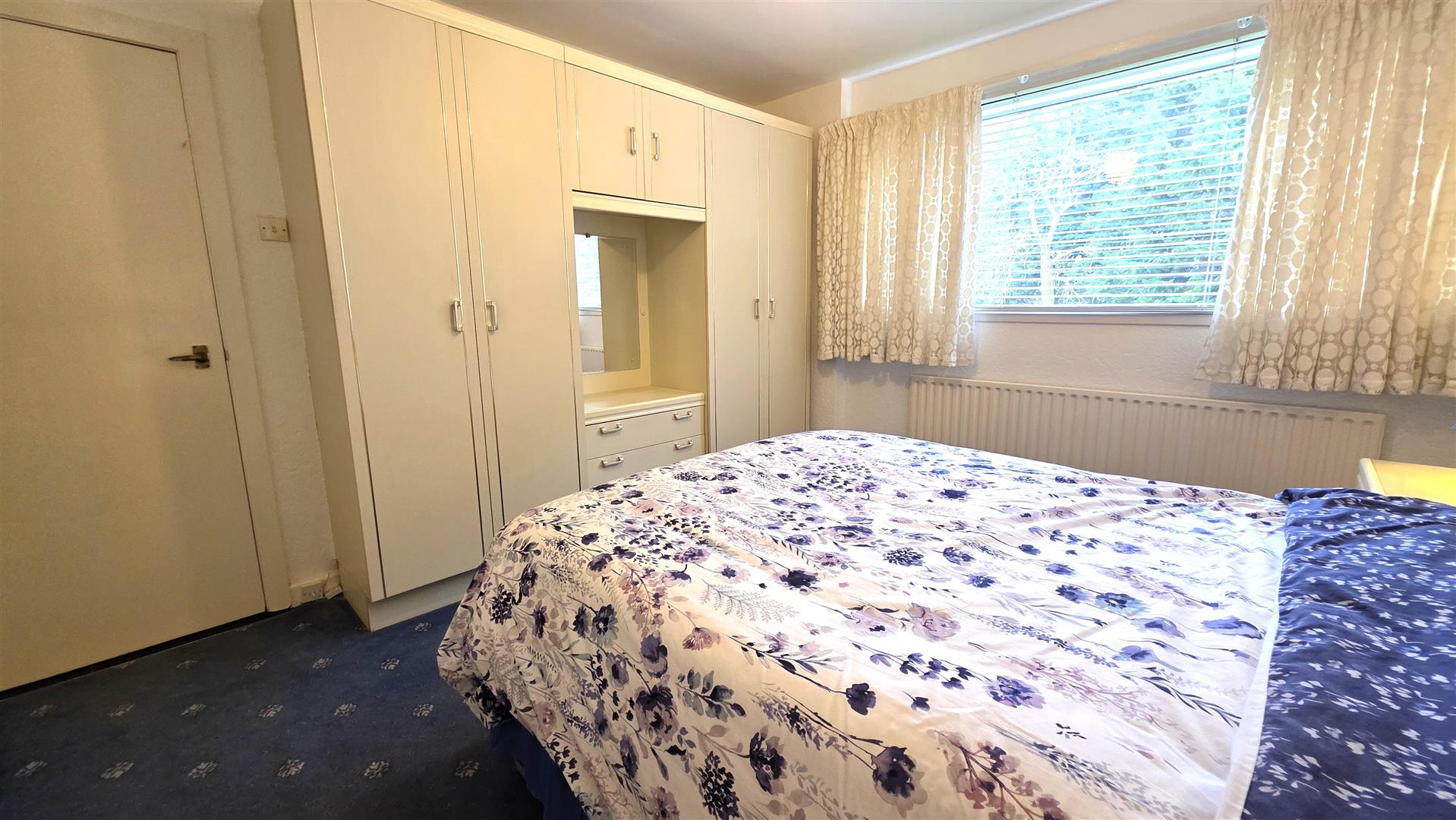 Large Integrated bedroom storage with closing rails. Single radiator.
