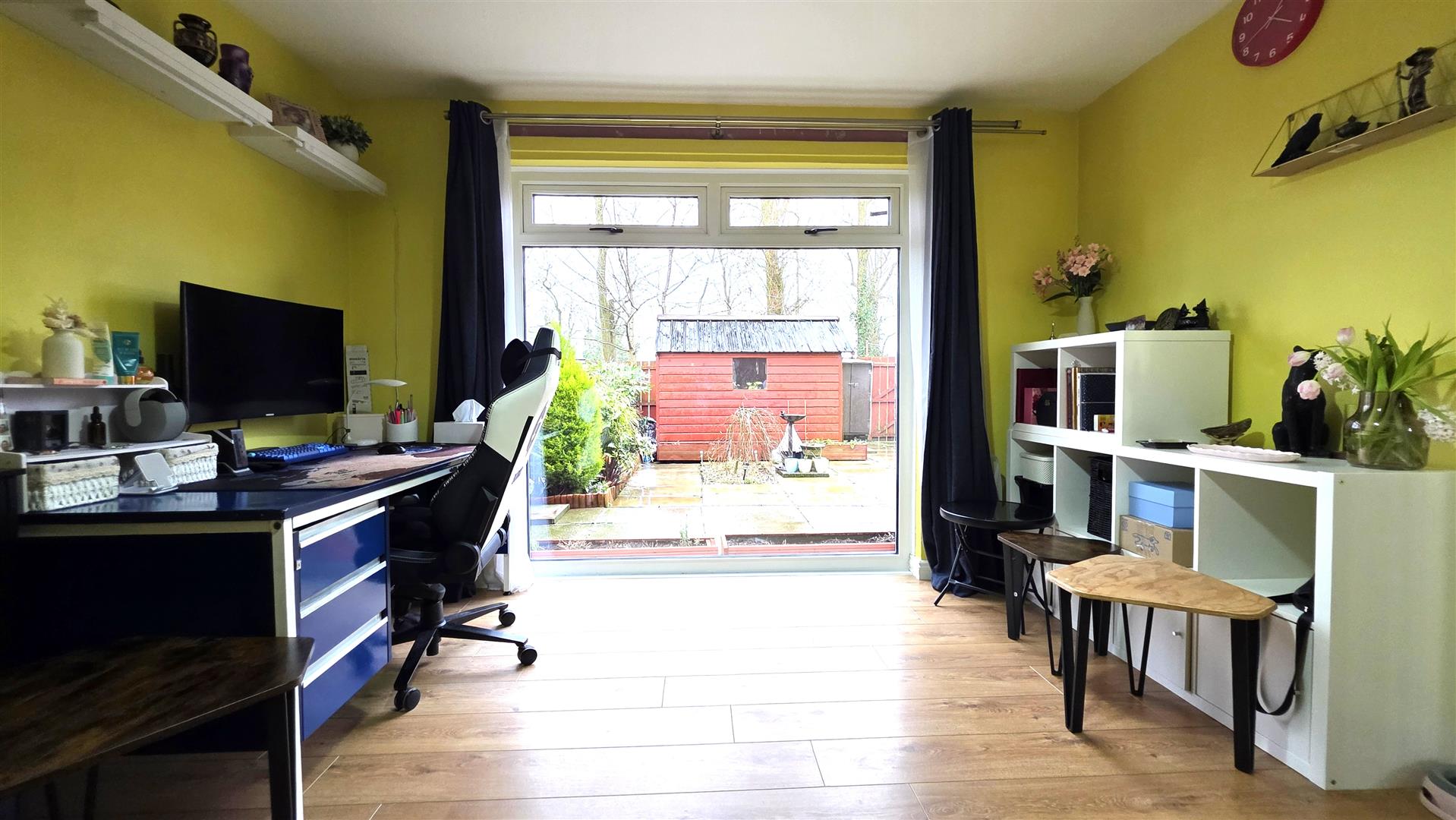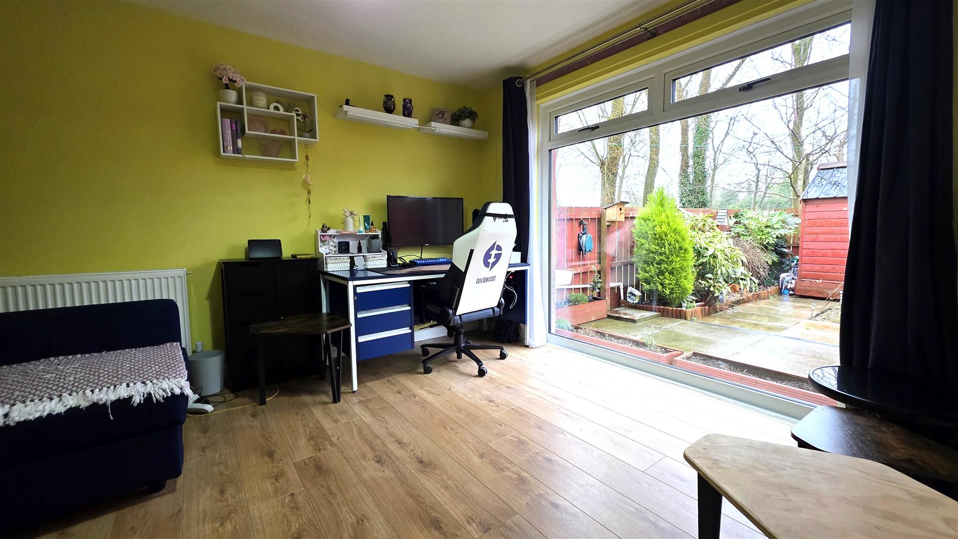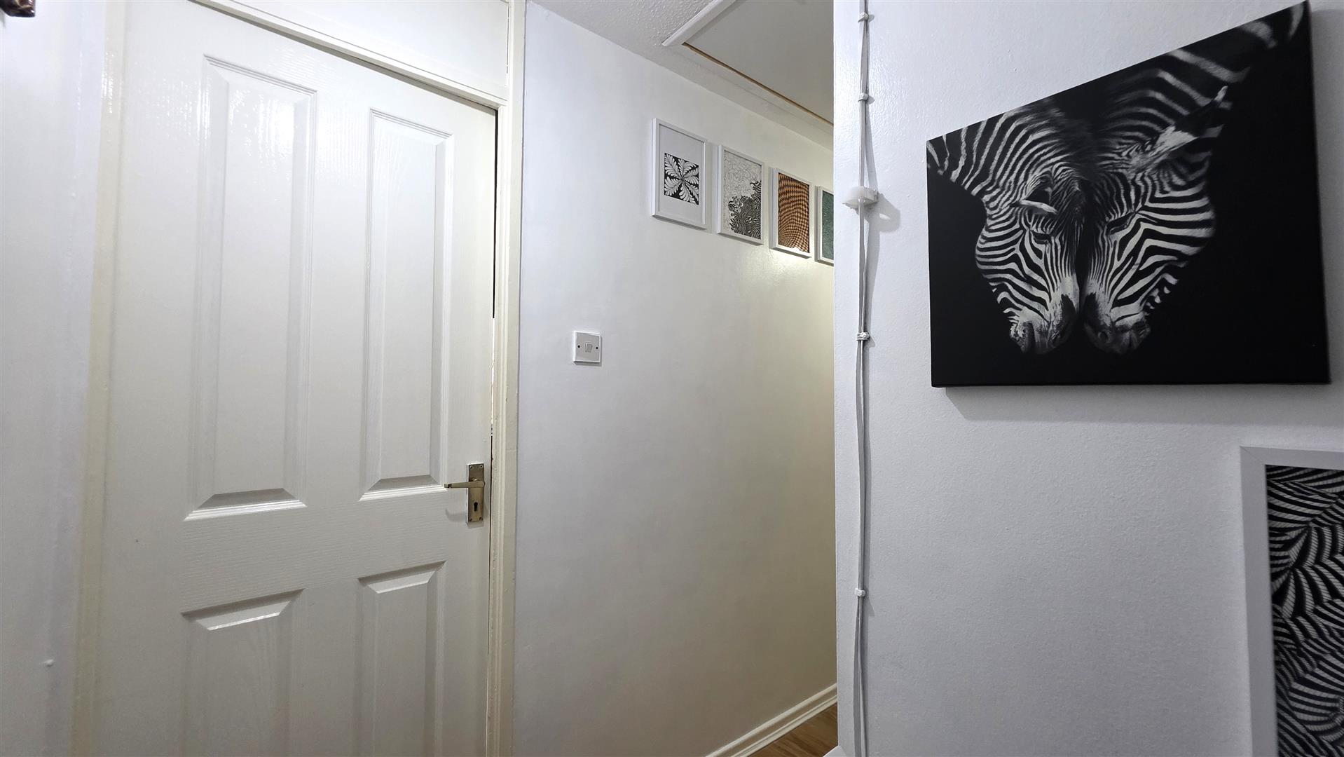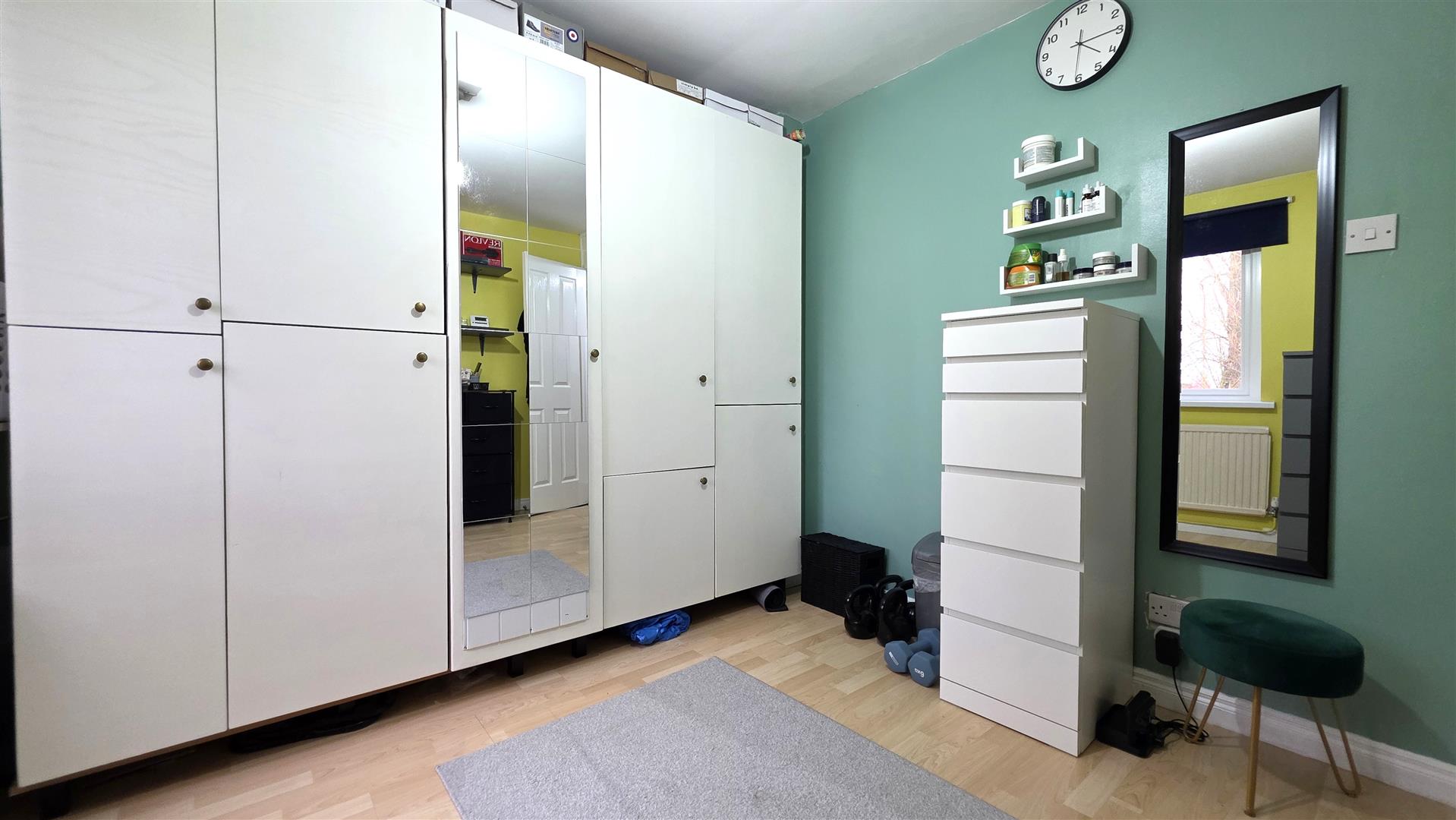 Composite double glazed door to entrance. Stair case to first floor with hand rail. Large storage cupboard. Wood laminate floor. Double radiator. Second storage cupboard.