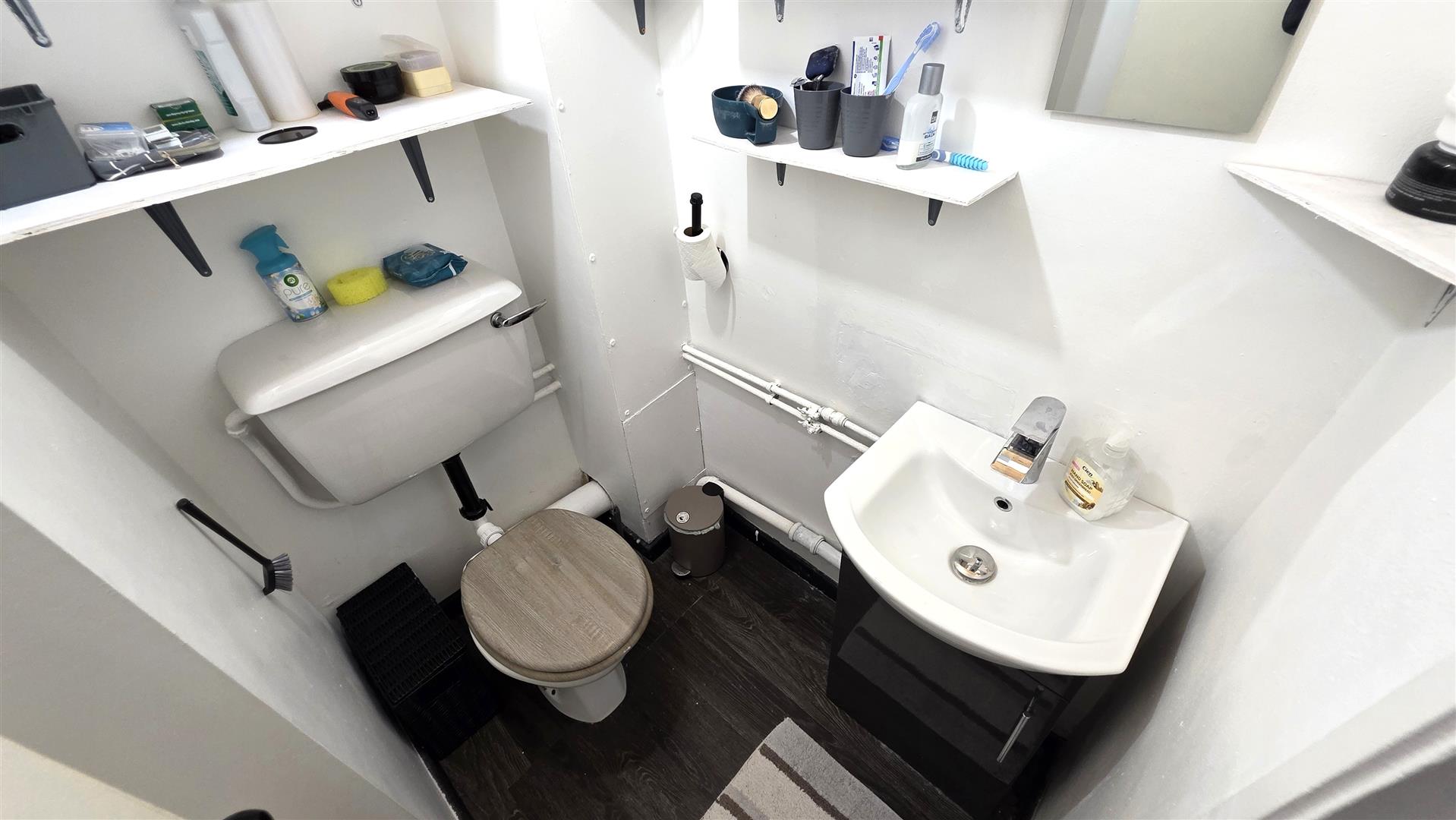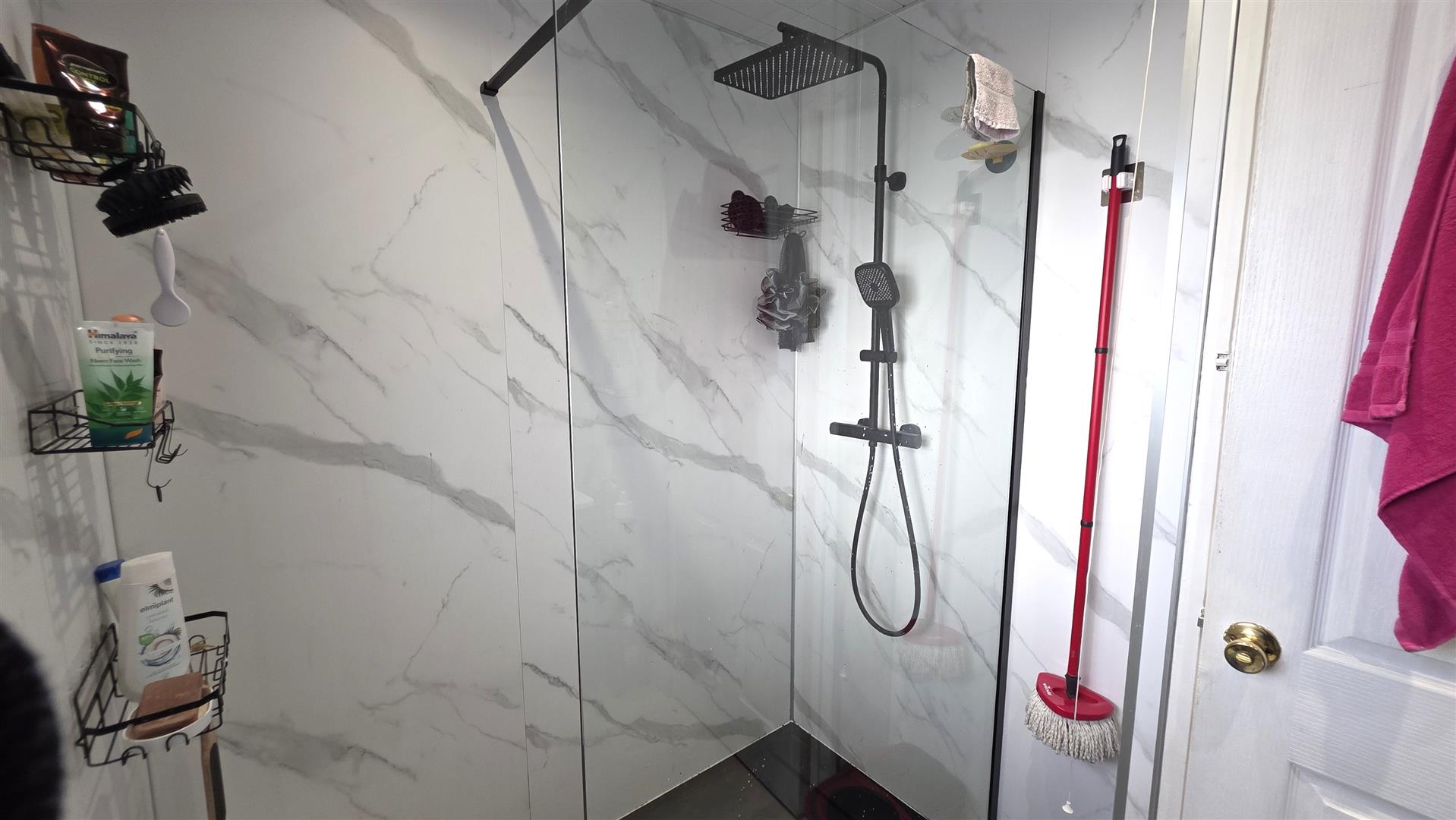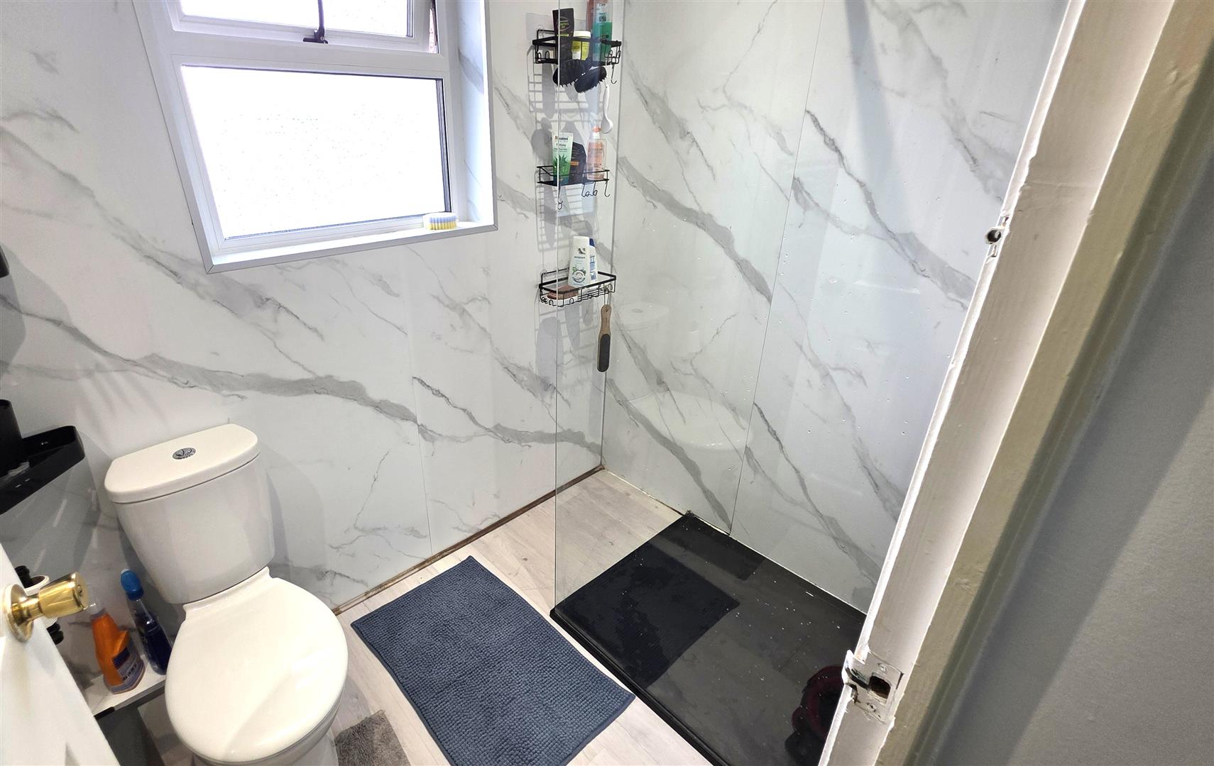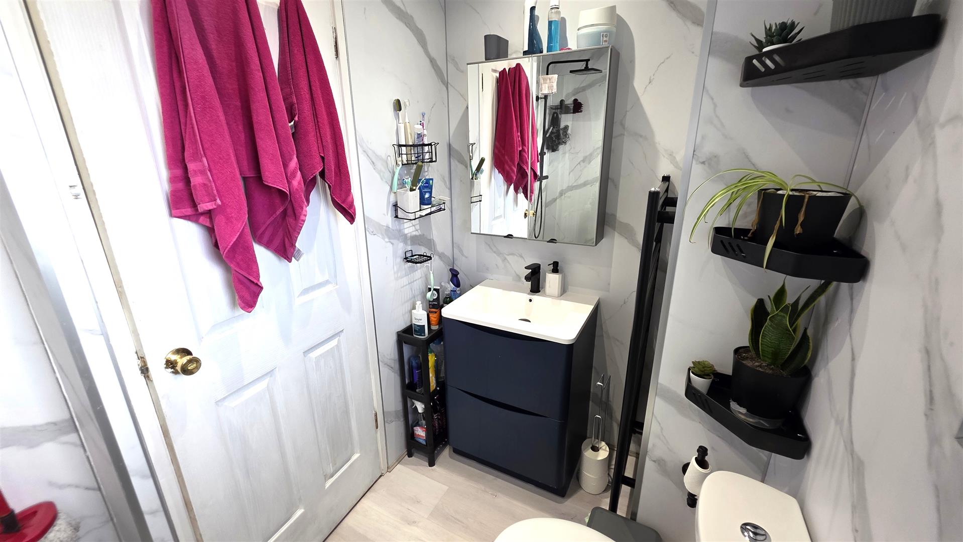 Recently fitted luxury shower room comprising a walk in shower with 'Drench' shower head, secondary attachment glazed screen and 1,200mm tray. 'Vanity' wash hand basin with black 'Monobloc' mixer tap and storage below. Low flush push button WC. PVC panelling to all walls. LVT flooring. Low voltage down lighting. Black towel radiator.