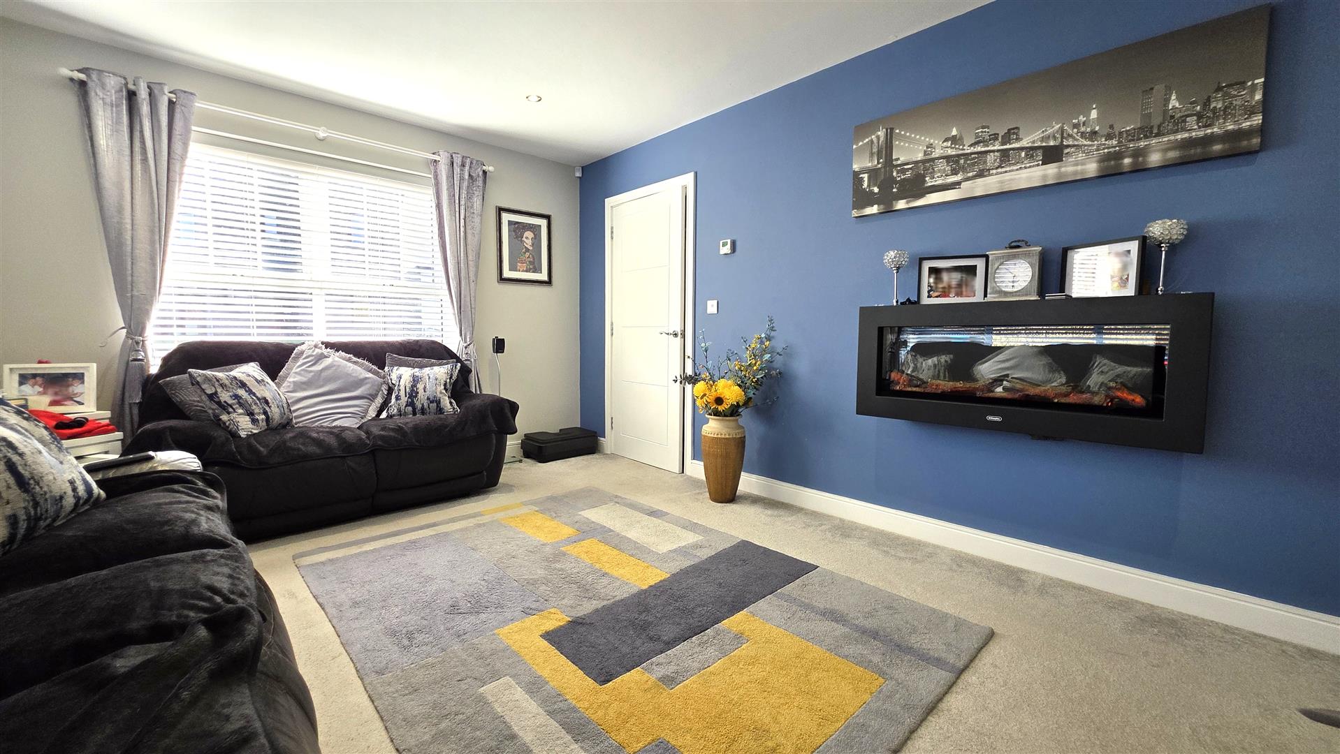 Living room 16'9" x 11'10" with feature wall mounted contemporary style electric fire