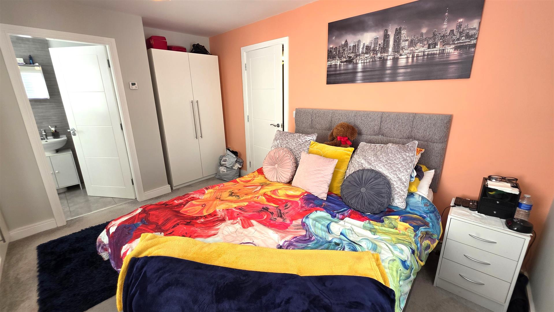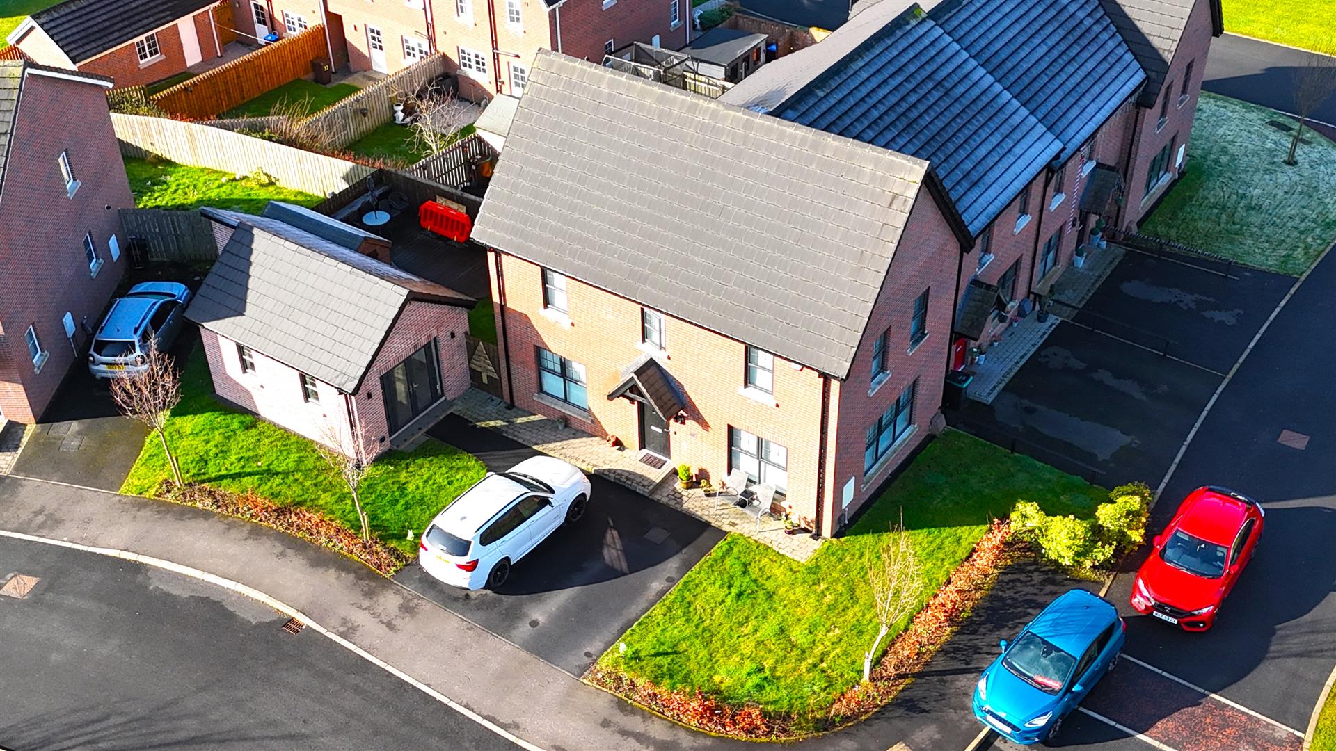 Upstairs, the property boasts three generous bedrooms including a principal bedroom with ensuite, alongside a stylish four piece family bathroom featuring a panel bath and separate enclosed shower.