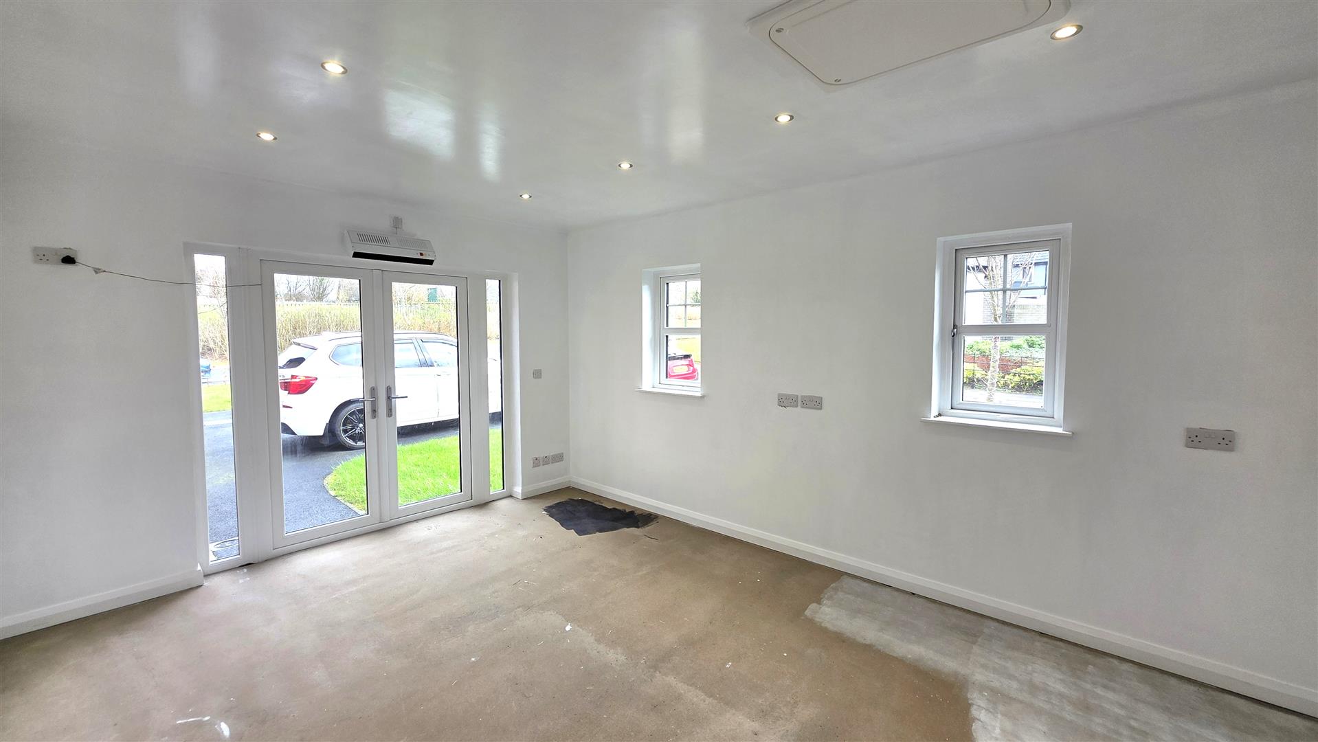 With full power lighting insulation and heating. Double radiator. No voltage downlighting. PVC double glazed windows. PVC double glazed 'French' doors to front with sidelights. Door to WC with pedestal wash hand basin and low flush WC. Low voltage down lighting. Chrome towel radiator. Outside power sockets.
