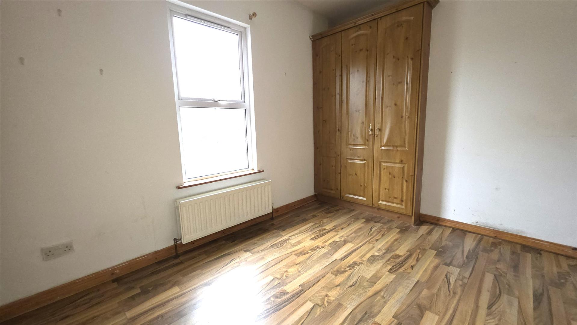 Integrated bedroom storage. Wood laminate flooring. Double radiator.