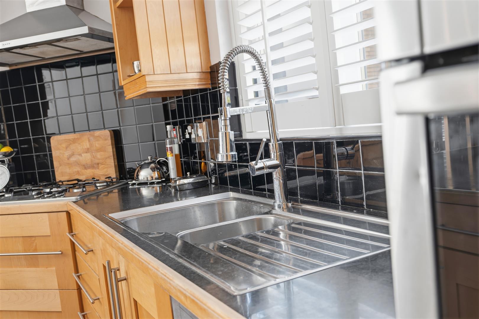 The ground floor boasts two well-proportioned reception rooms, ideal for both relaxing and entertaining, alongside a generous kitchen with informal dining. The kitchen is finished with solid oak shaker-style units, a range of integrated appliances, and a matching island, creating a stylish and practical heart of the home.