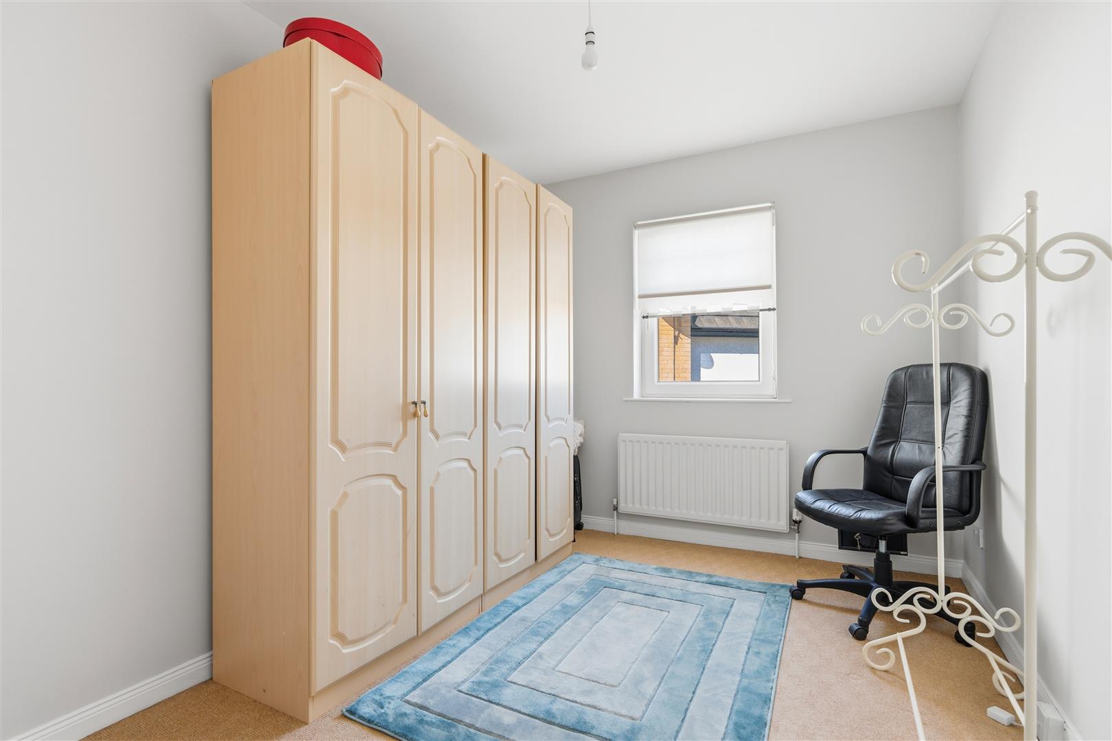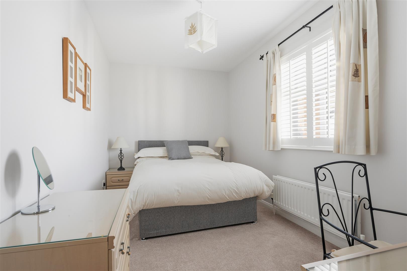 Integrated bedroom storage with sliding doors, clothing rails, shoe wracks, drawers, pull out shelving and integrated lighting. Double radiator.