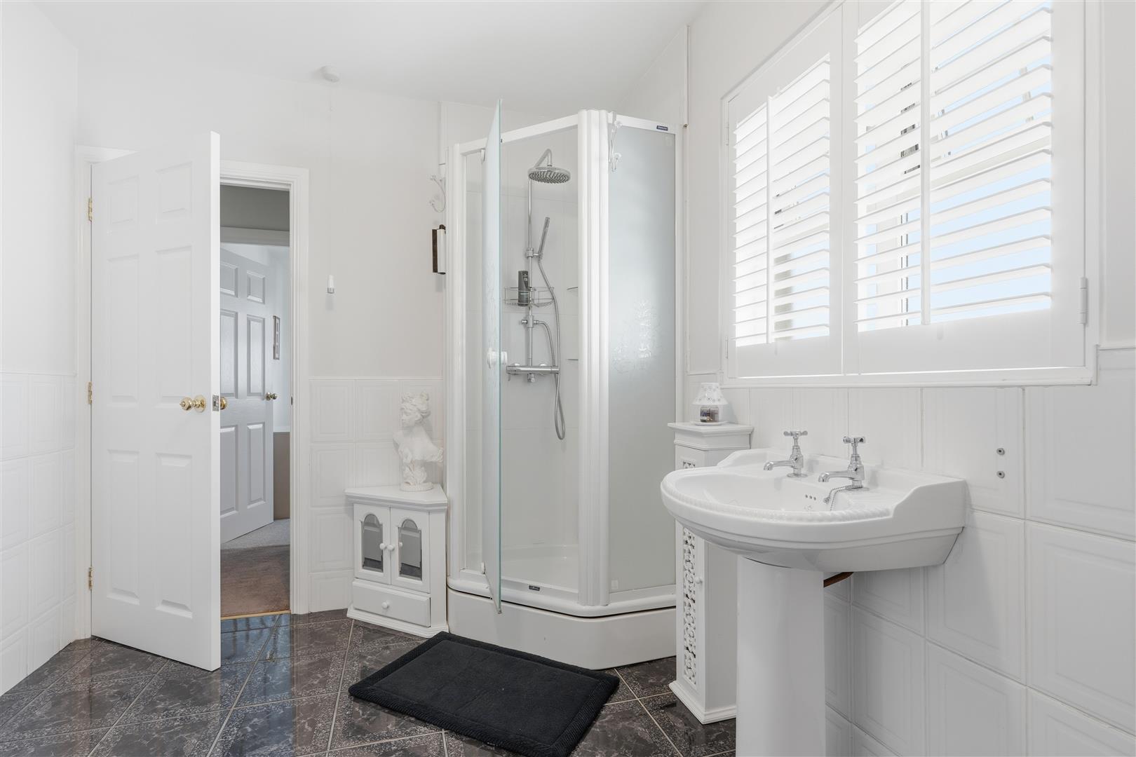 Four piece family bathroom to include panel bath and separate enclosed shower with power shower