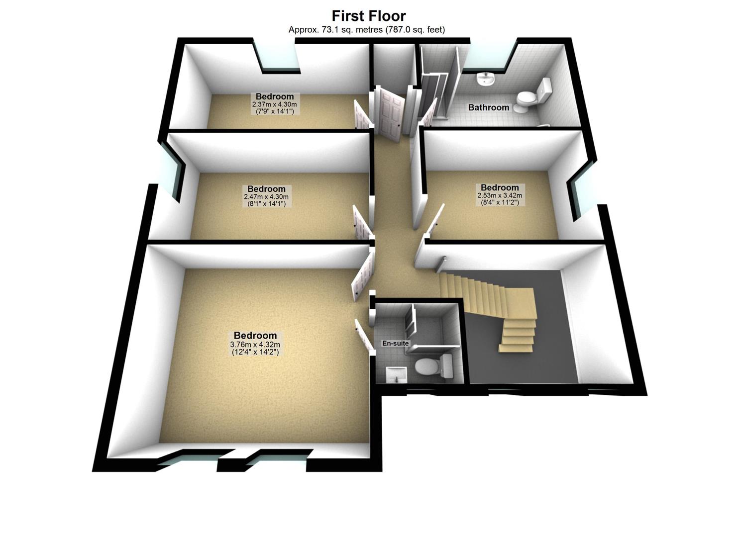 Four well proportioned bedrooms to the first floor including Principal with ensuite and integrated storage