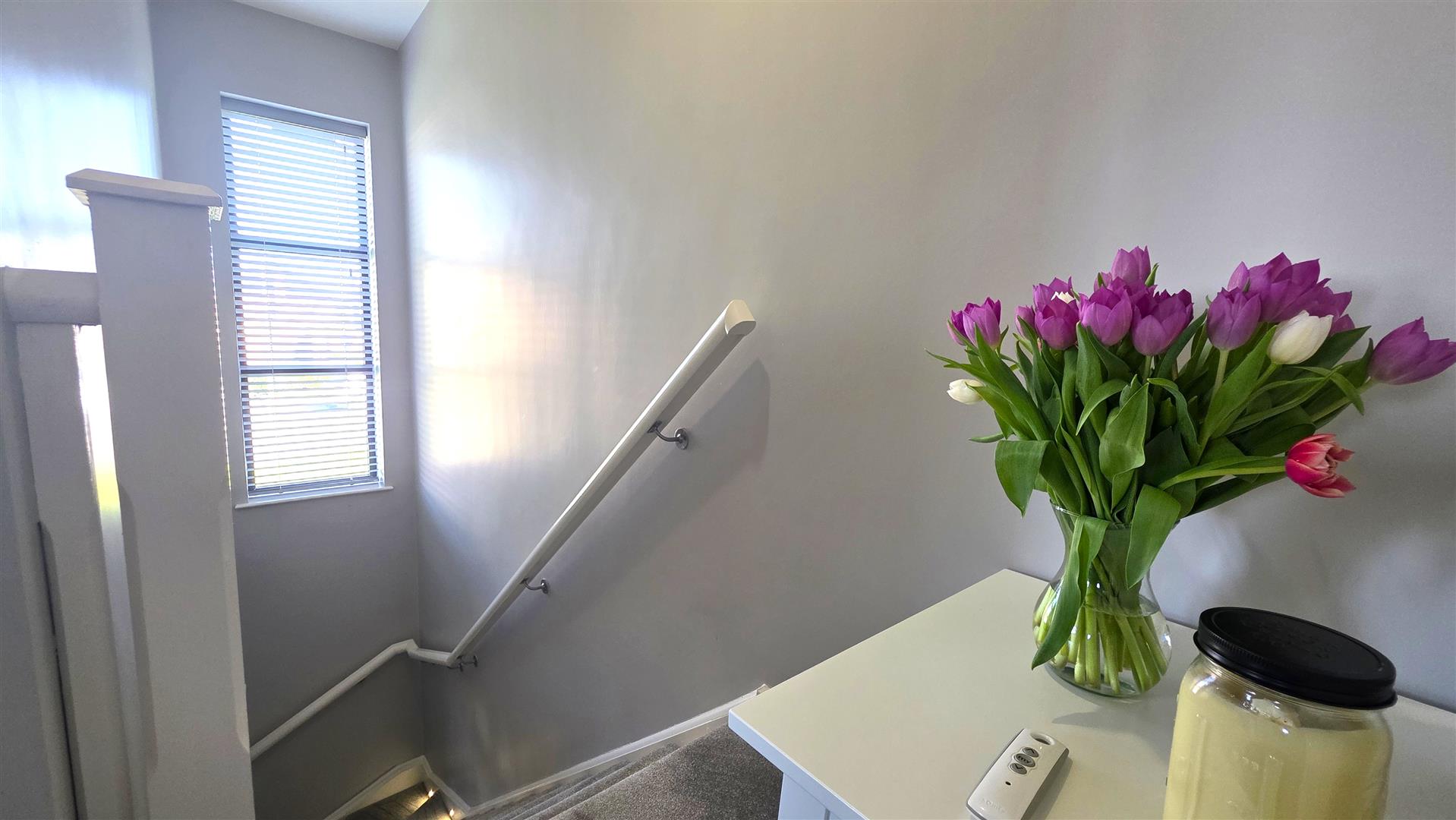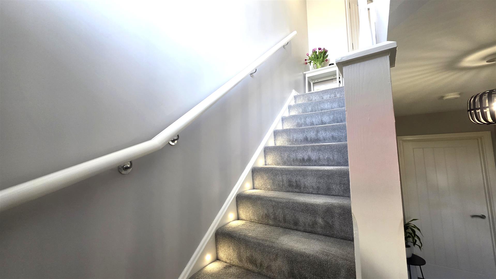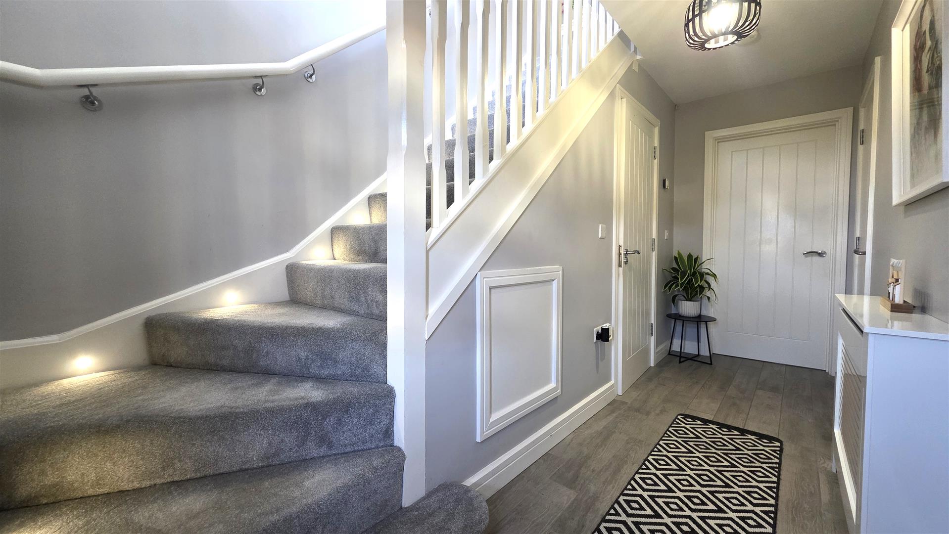 Entrance hall with fully tiled floor / Staircase to First Floor with LED bullet lights